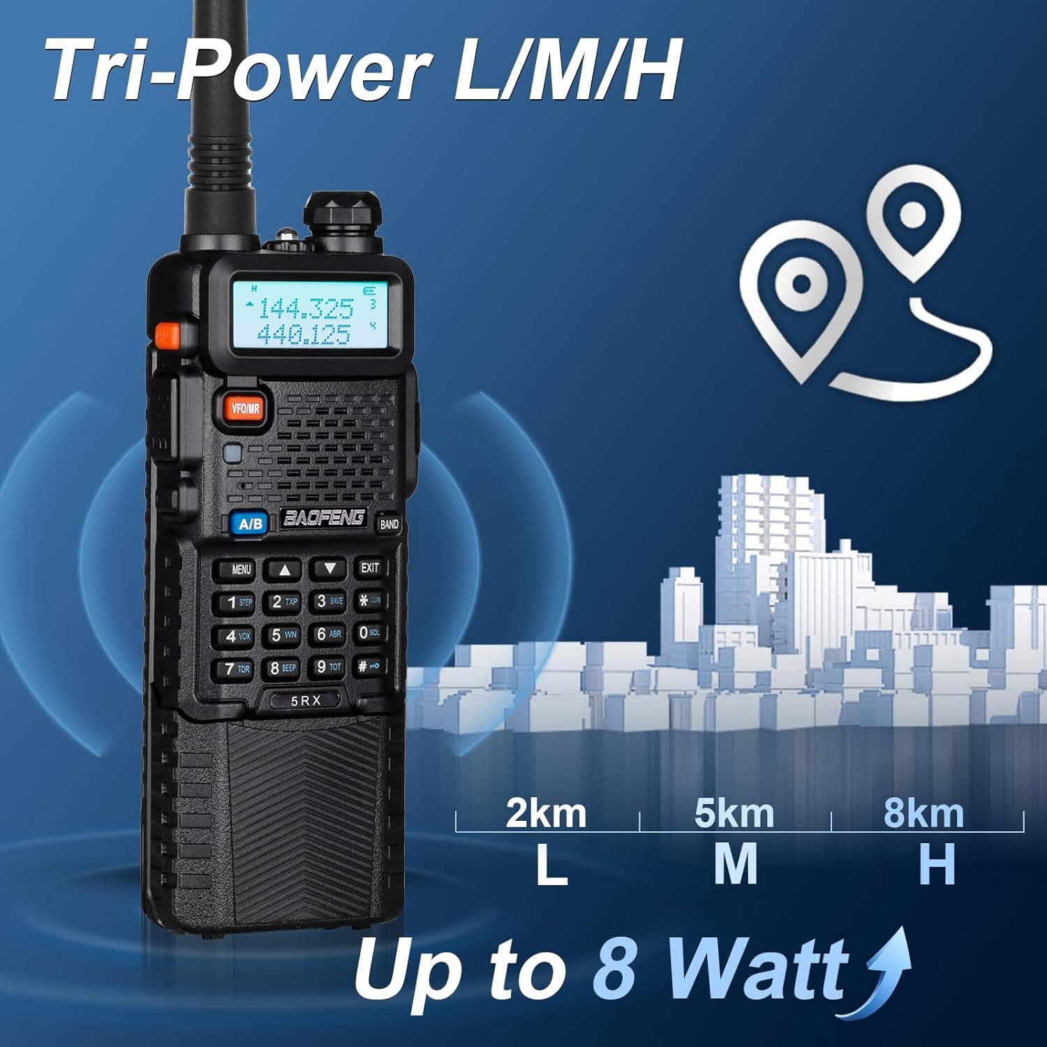 📌【2025 BAOFENG Radio】New functions: 8 watt high power, Copy Frequency, Multi-Band eception; More basic functions: 128 Memory Channels, CTCSS and DCS codes, SOS Emergency, Scan, VOX Mode for Hands-Free, A/B band independent operation, dual display, dual standby, Auto Keypad Lock and so on. (FCC ID: 2AJGM-5RX)
