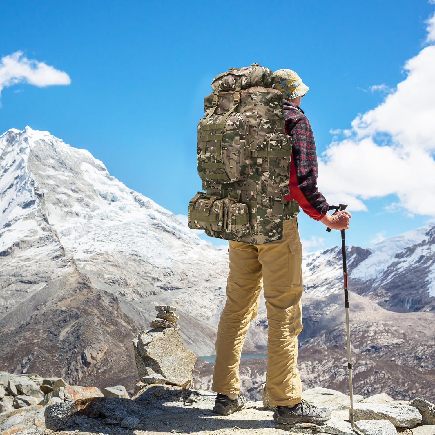 【Waterproof and Breathable Fabric】: The 100l tactical military backpack is made of 903D Oxford cloth fabric and waterproof material. The military backpacking bag thick density Tear Resisten Oxford cloth fabric is waterproof and wear-resistant, and the texture is tough and odorless. For traditional hiking backpacks, belts and high-quality zippers are better with durability and scratch resistance.