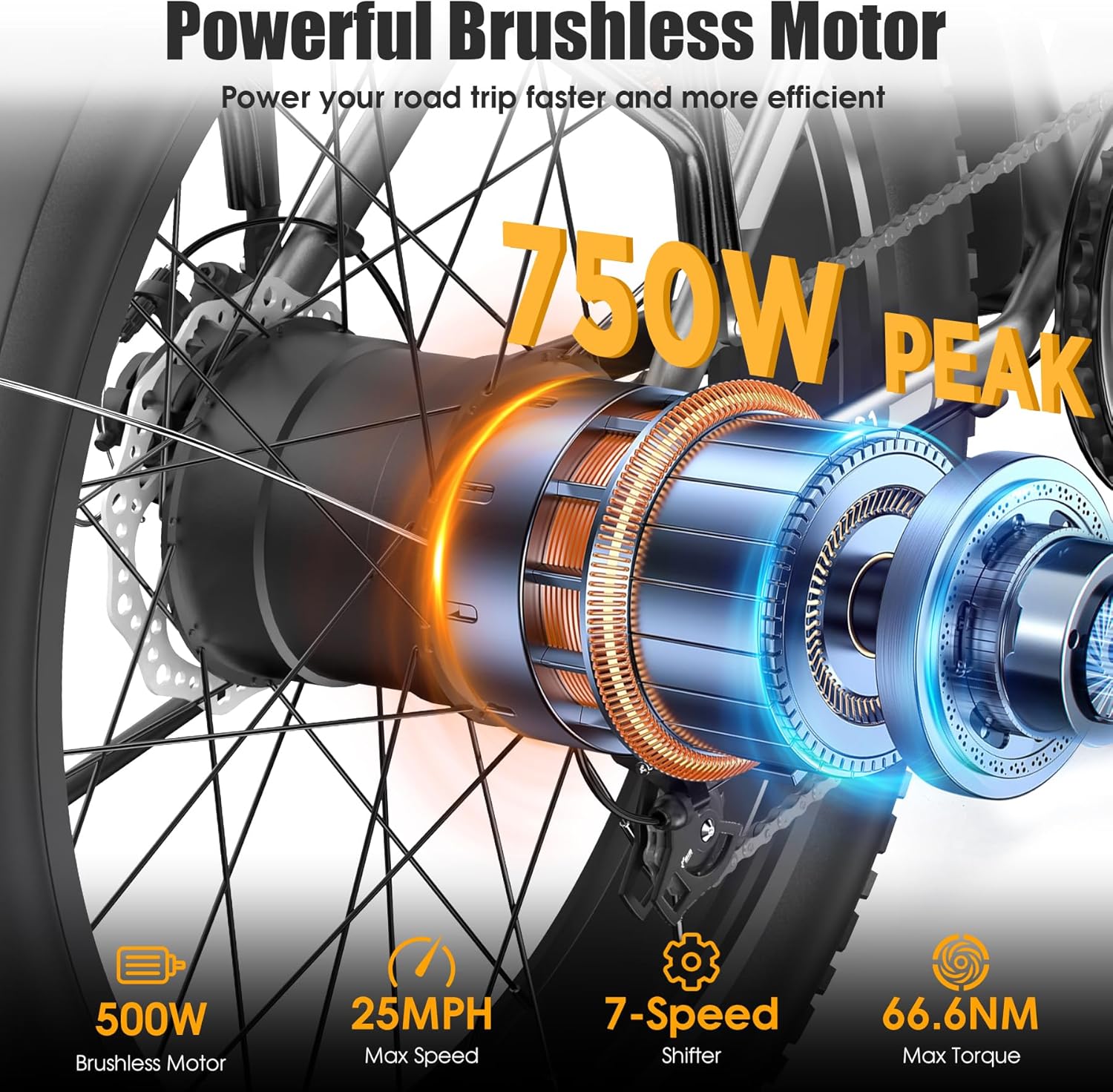 1000W PEAK BRUSHLESS MOTOR: Funhang EB-S1 fat tire electric bike for adults adopts a high-speed brushless 500W motor (PEAK 1000W), boosted a top speed of 21.7MPH(up to around 25MPH by unlocking the speedlimiter operation). Its ample power allows you to climb hills/inclines and conquer off-road challenges effortlessly.