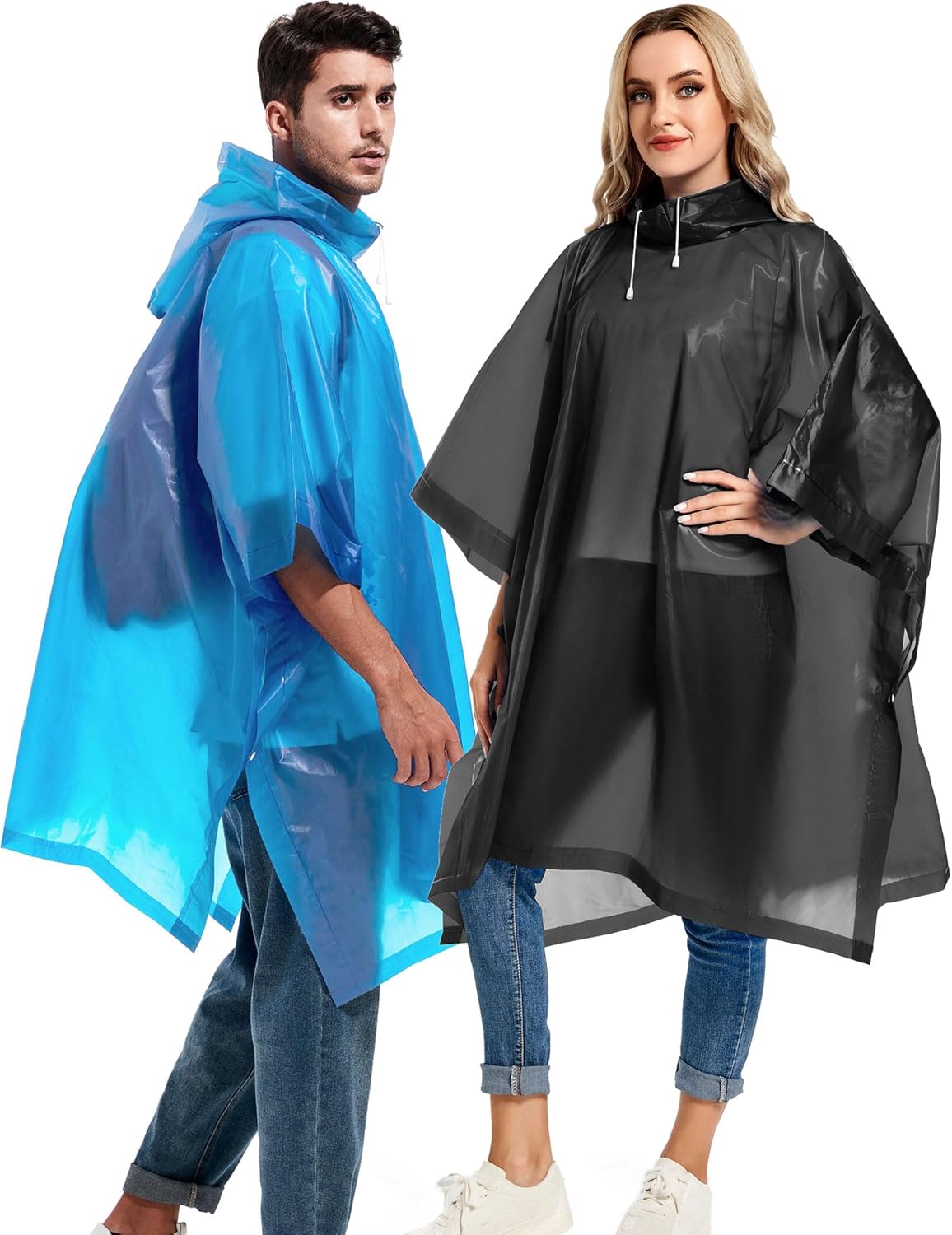 Rain Ponchos with Drawstring Hood for Adults