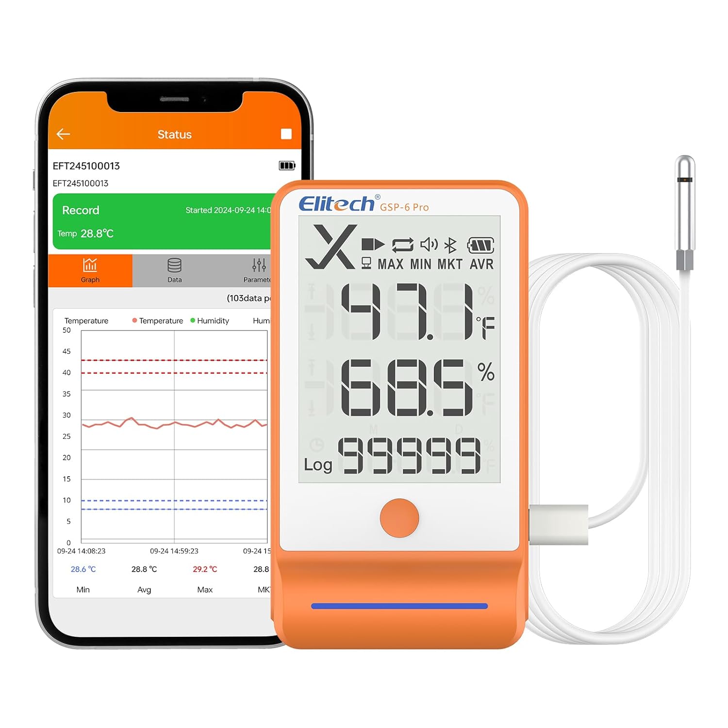 Bluetooth Connectivity – Hook up with the app by way of Bluetooth for parameter settings, information studying, report exporting, printing, and extra. Further functionalities will also be configured utilizing Elitechlog software program.