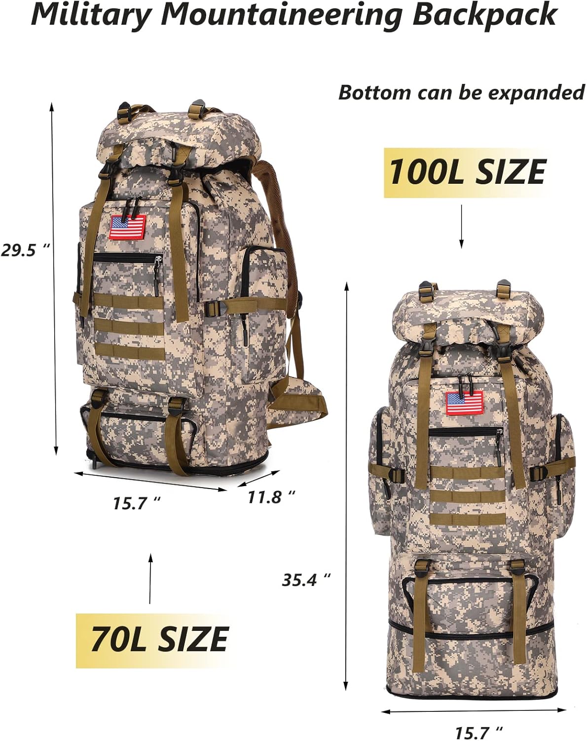 2 in 1 70/100L Large Camping Hiking Military Tactical Backpack