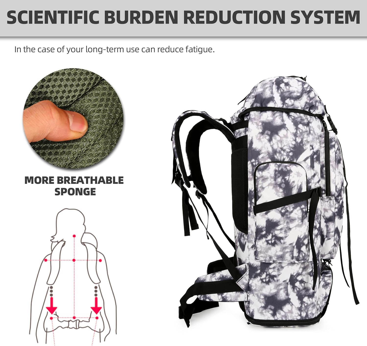 【Hiking Backpack】: This waterproof and lightweight trekking backpack measures 15 * 8.5 * 30 inches, the trekking backpack only weighs 3.5 pounds, it will not increase your travel burden. Military large capacity high quality durable backpack for camping, hiking, hunting, mountaineering. It can replace a suitcase.