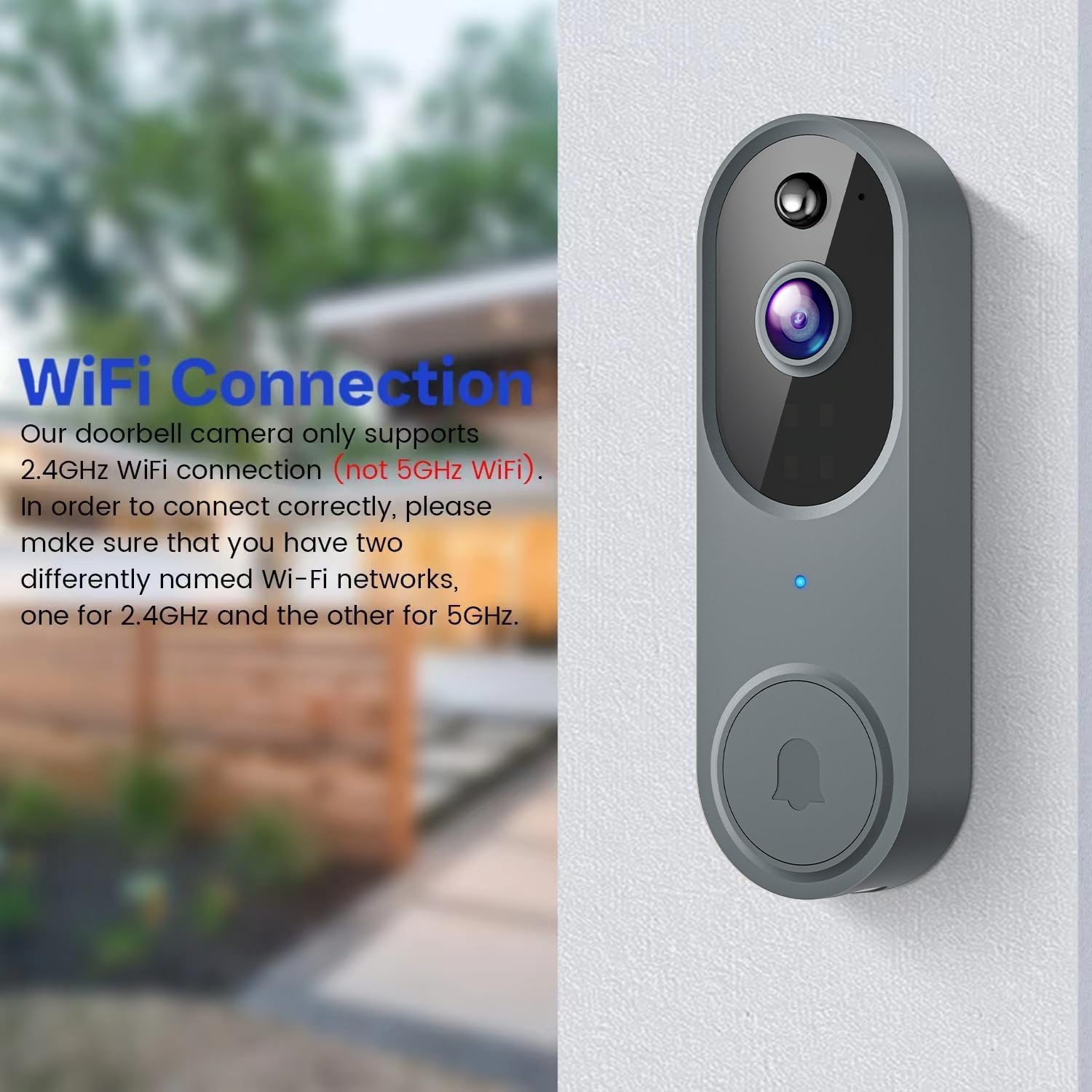 Only Supports 2.4GHz Wi-Fi: The doorbell is designed specifically for 2.4GHz Wi-Fi networks to ensure a stable and fast connection (does not support 5GHz Wi-Fi).