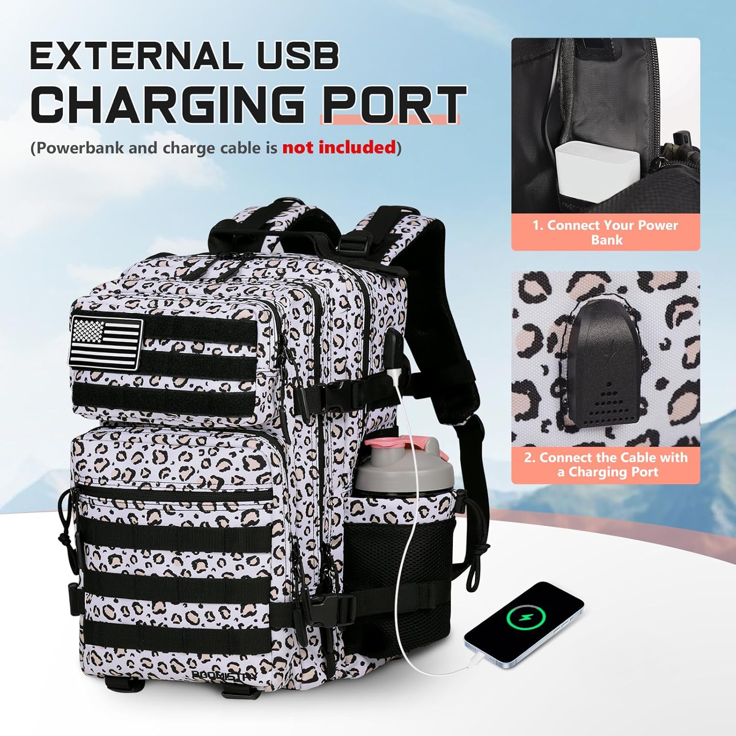 【Multi-Use & USB Connected】The tactical backpack, equipped with a USB charging interface, fulfills all your outdoor and daily travel needs. Whether you’re into outdoor adventures, climbing, fitness, camping, or daily commuting, this backpack keeps your communication devices charged anywhere, anytime. Also easily converts to a army backpack, military backpack or day pack for daily use