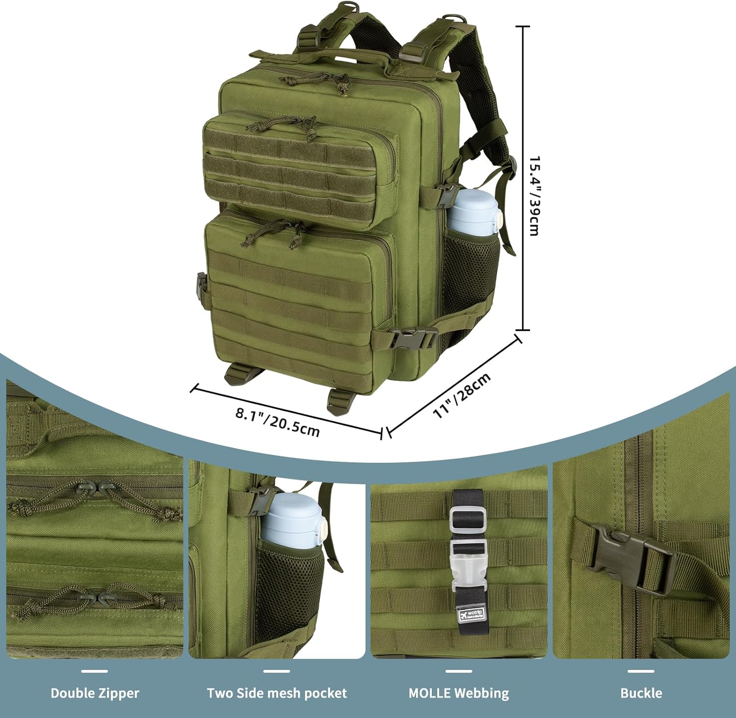 Be the first to review “25L Small Tactical Green Backpack for Men and Women,Military Backpacks Rucksack with Molle Webbing Daypack Bug Out Bag Travel With Bottle Holder(25L)”