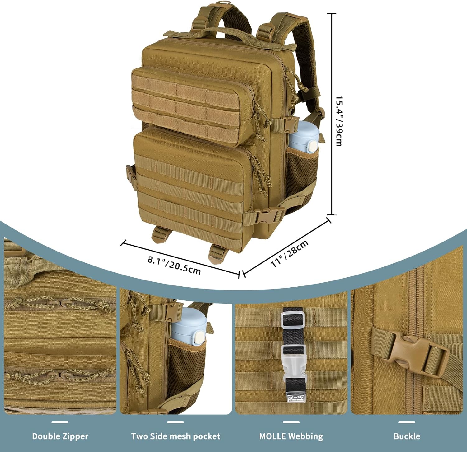 Be the first to review “25L Small Tactical Khaki Backpack for Men and Women,Military Backpacks Rucksack with Molle Webbing Camping Daypack Bug Out Bag With Bottle Holder(25L)”