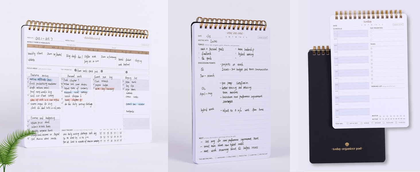 A curated set of our best-selling notepads to help you stay organized, productive, and professional. With each of these notepads, we’ve identified the common roadblocks and demands of a typical workday and created a system that helps you conquer these challenges like a pro.