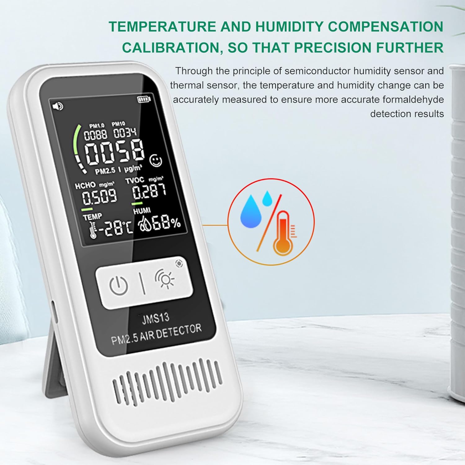 【Comprehensive 5-in-1 Air Quality Monitor】:This advanced indoor air quality detector offers real-time monitoring of PM2.5, PM1.0, PM10, TVOC, HCHO, temperature, and humidity. It provides a complete overview of your indoor environment, ensuring you are well-informed about the air quality around you.