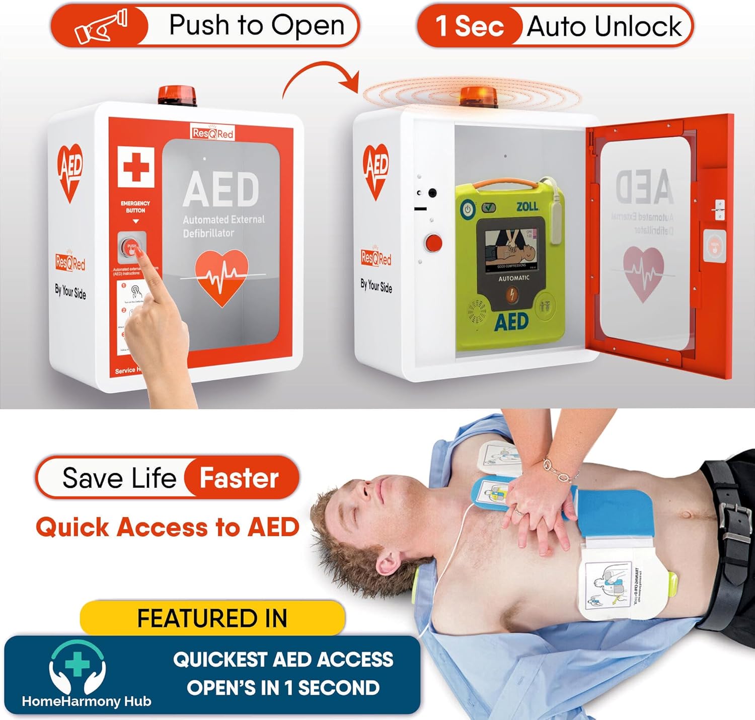 INSTANT VISIBILITY FOR RAPID RESPONSE – The ResQRed pre drilled wall mount AED signboard and transparent window ensure the AED defibrillator portable machine is easily seen and quickly accessed. With prominent AED icons on all three sides, even from a distance, this wall cabinet stands out, guiding you straight to life-saving assistance.