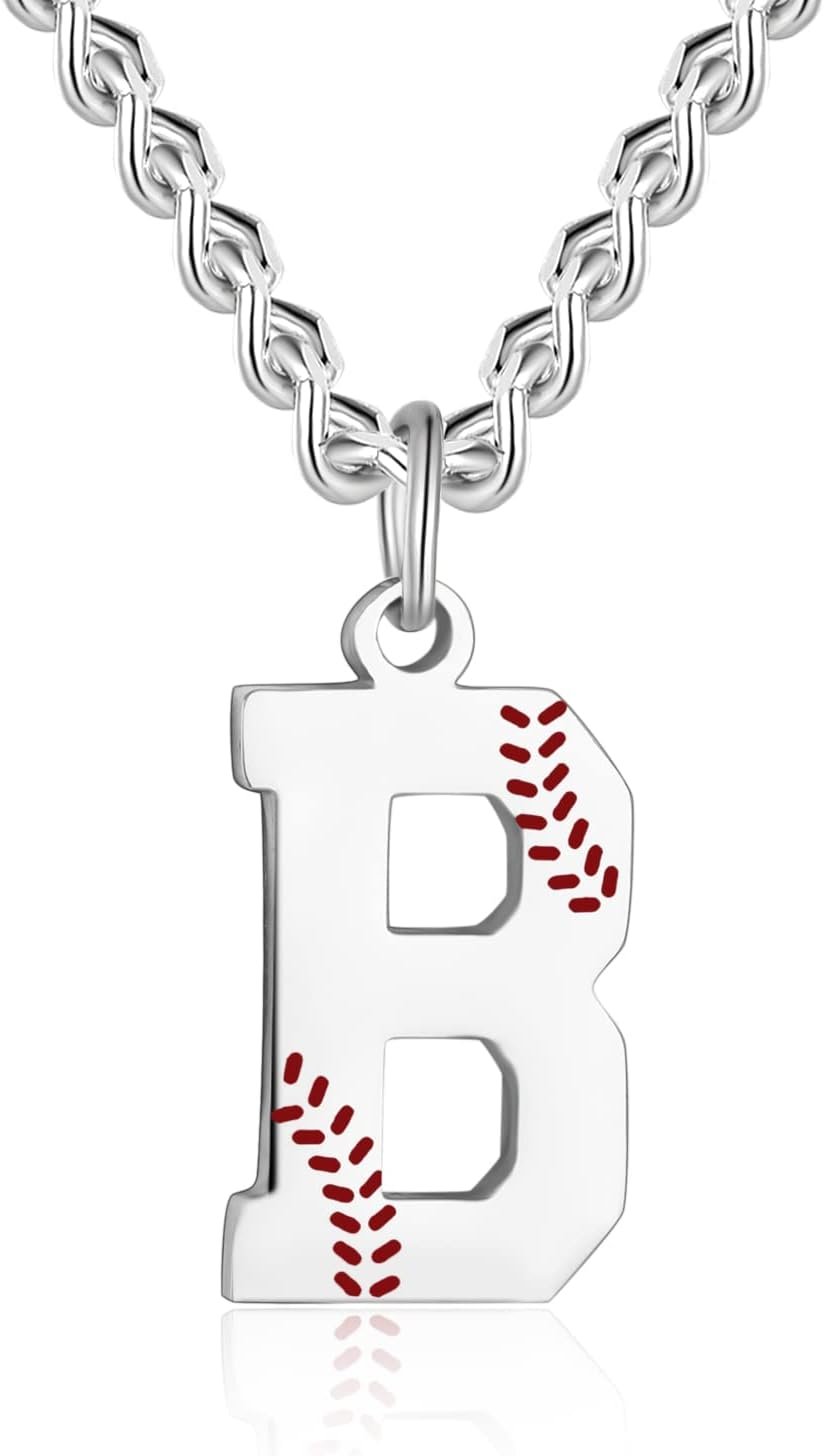 Baseball Initial A-Z Letter Necklace for MenBaseball Charm PendantStainless Steel Silver Chain 22inchPersonalized Baseball Gift for Men Women