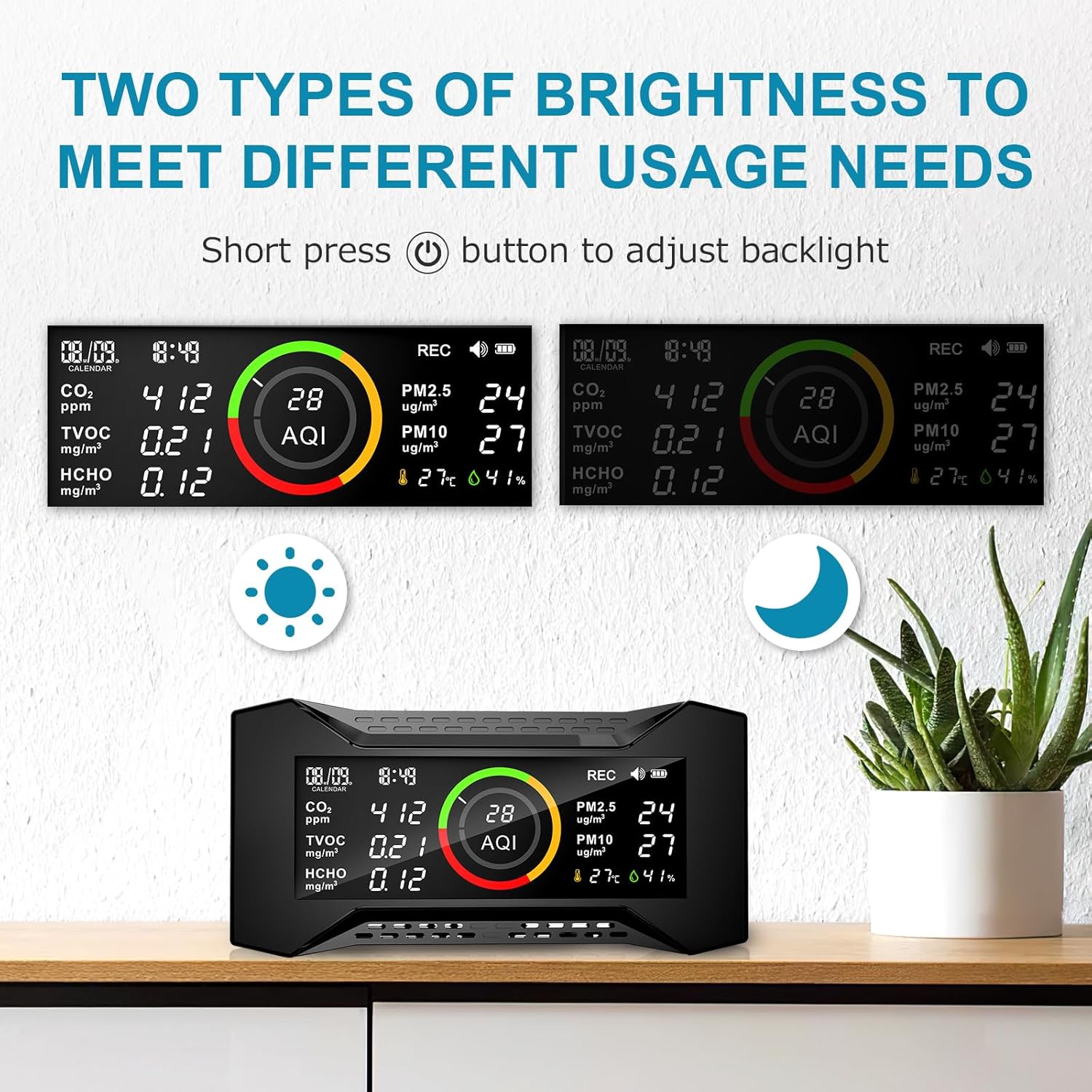 Adjustable Screen Brightness: The Air-Guardian AQPro PM2.5 monitor can adjust the screen brightness by pressing the power button, making it more convenient for you to use.