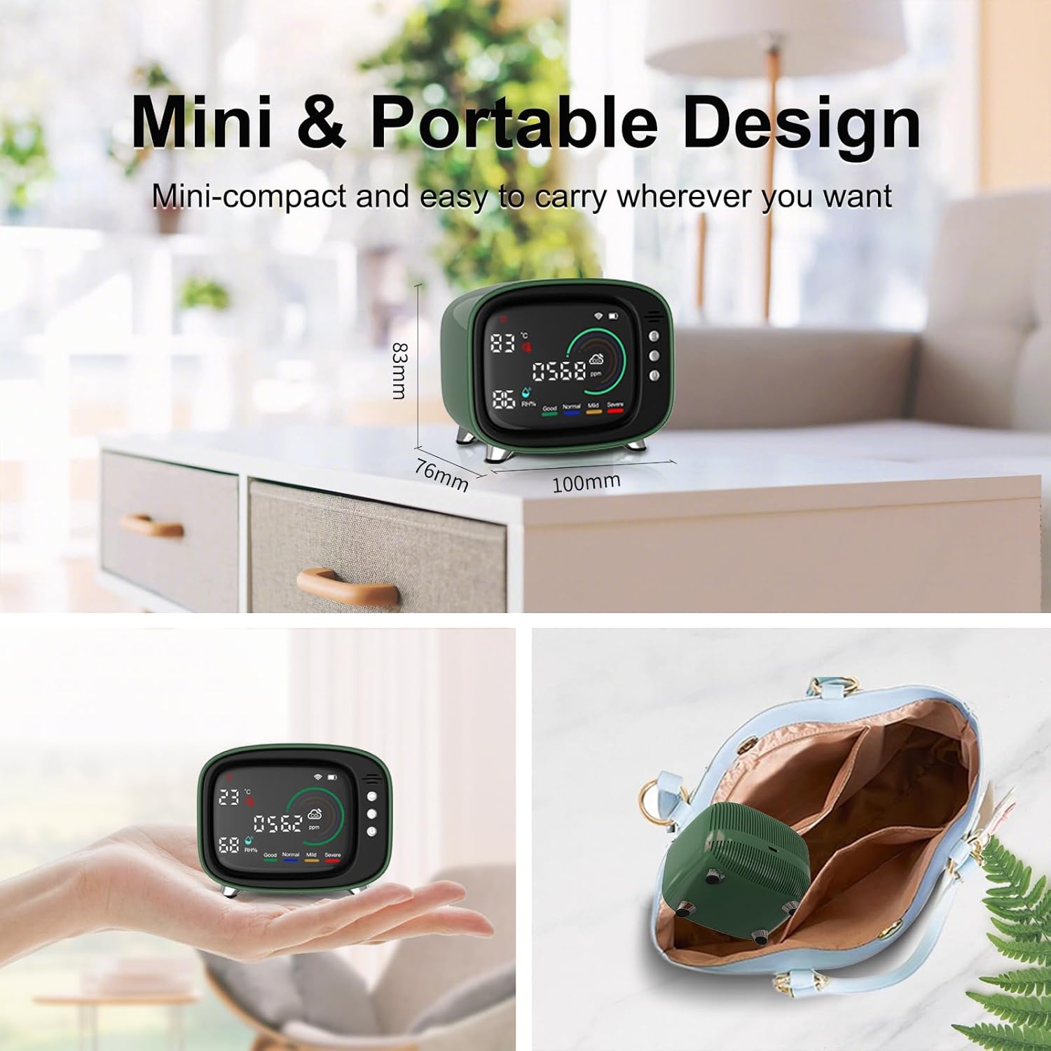 【Portable Wireless & Compact Design】2.4Ghz WIFI ,Portable sleek retro-inspired form factor allows seamless integration into any indoor living space,CO2 Meter with Alarm,Tester for Home Office School Car. Using 2.4Ghz Wifi networking, it is simple and easy to use, and also convenient for mobile environments.CO2 Meter CO2 tester CO2 Monitor compatiable with leviot CO2 detector airthings Air Purifiers for Home,Carbon dioxide detector.