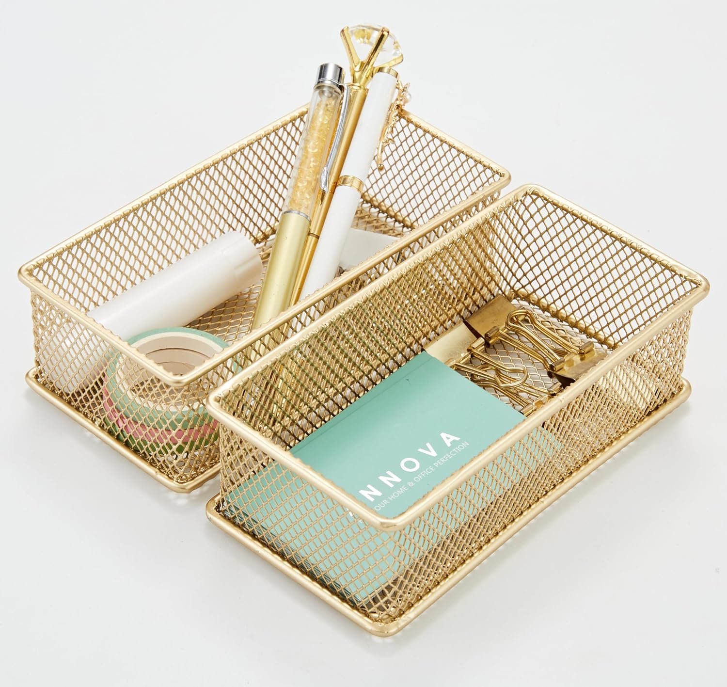 Be the first to review “Annova Mesh Stackable Drawer Cabinet and Shelf Organizer Bins Storage Basket School Office Supply Holder Tray- Set of 2 (Gold, 3x6x2 Inch)”