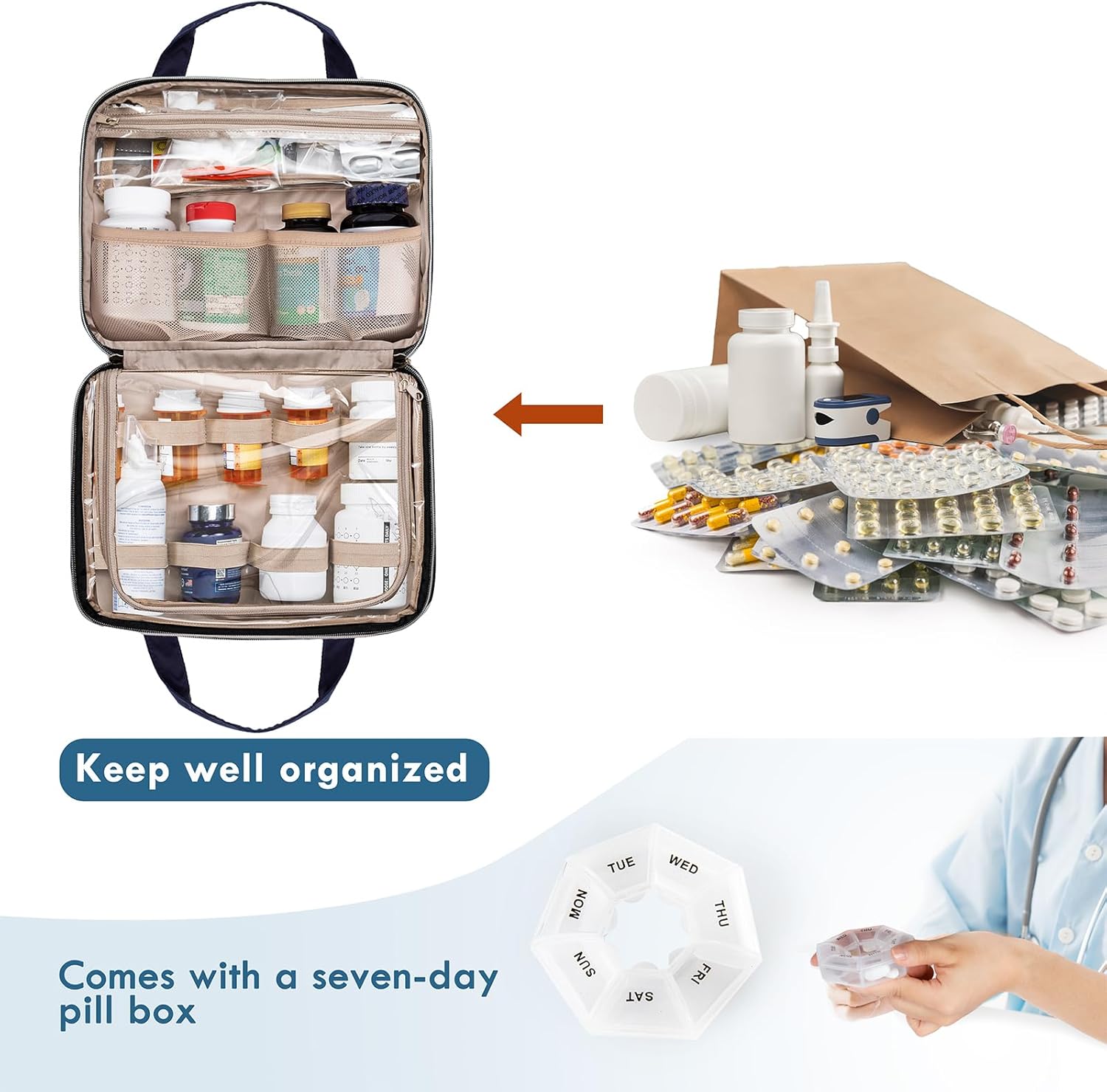 BAGSFY Medicine Bag for Traveling, Pill Bottle Organizer and Storage, Home Medication Bag, Vitamin Bottle Carrying Case Large Purple (Comes with Weekly Pill Organizer)