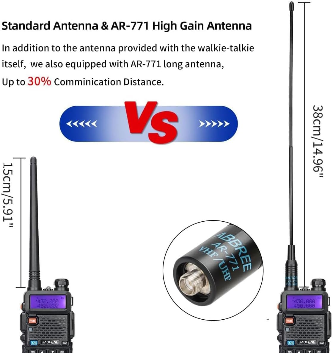 Long Range Communication:Equipped with high gain AR-771 enhances the signal extension communication distance of walkie talkies