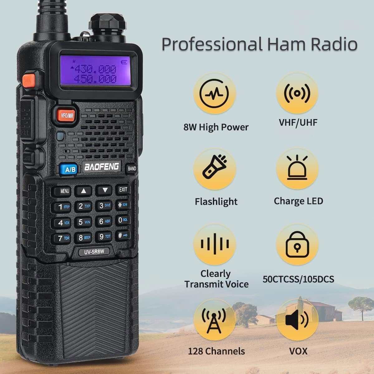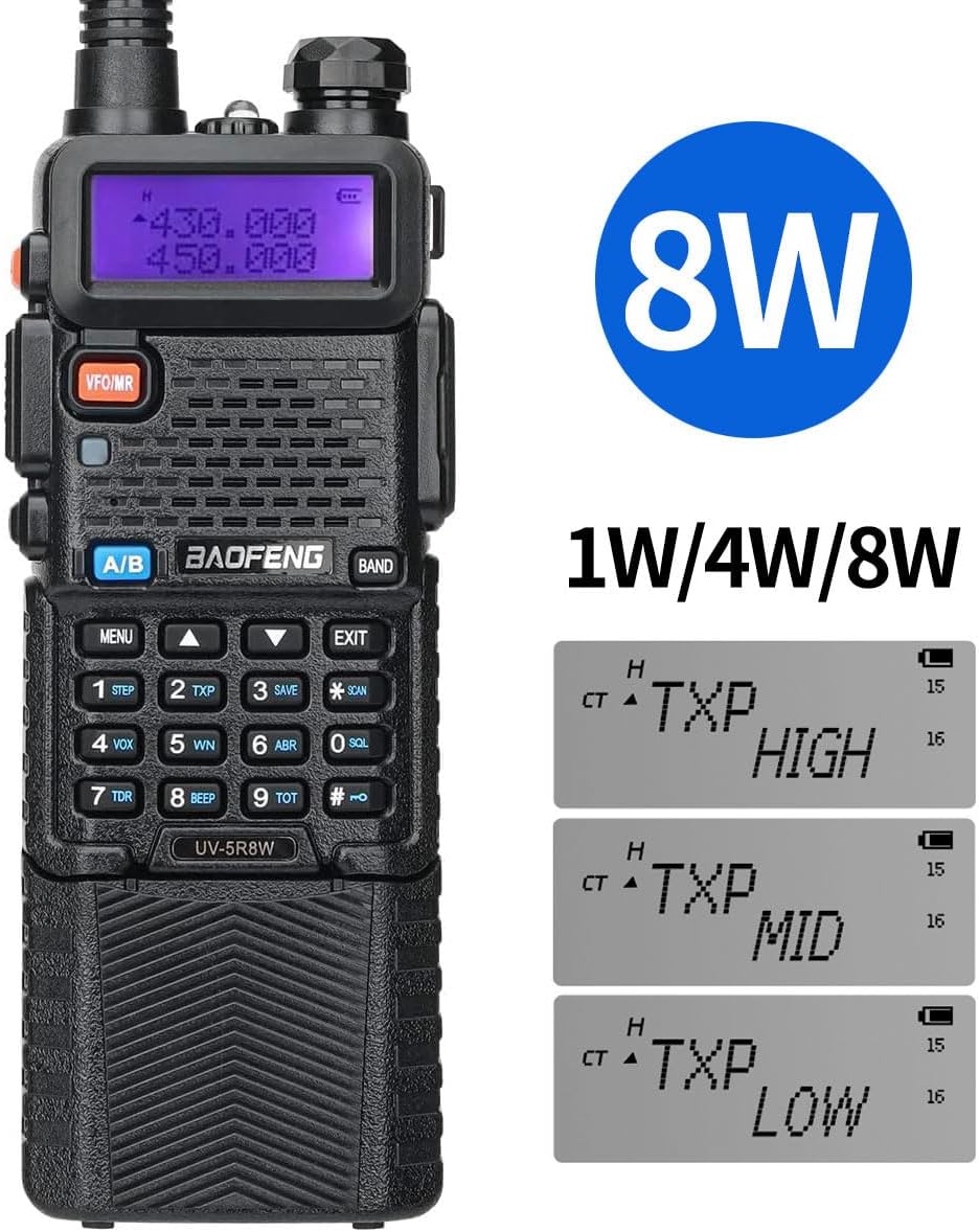 Professional Baofeng UV-5R Full Set:High/medium/low power TX selectable,Dual band/Dual display/Dual standby,128 groups of storage channels;50 CTCSS and 104 CDCSS,AUTO Keypad Lock,LED Flashligh,Outpower:8Watts.FCC ID: 2AJGM-UV5R.
