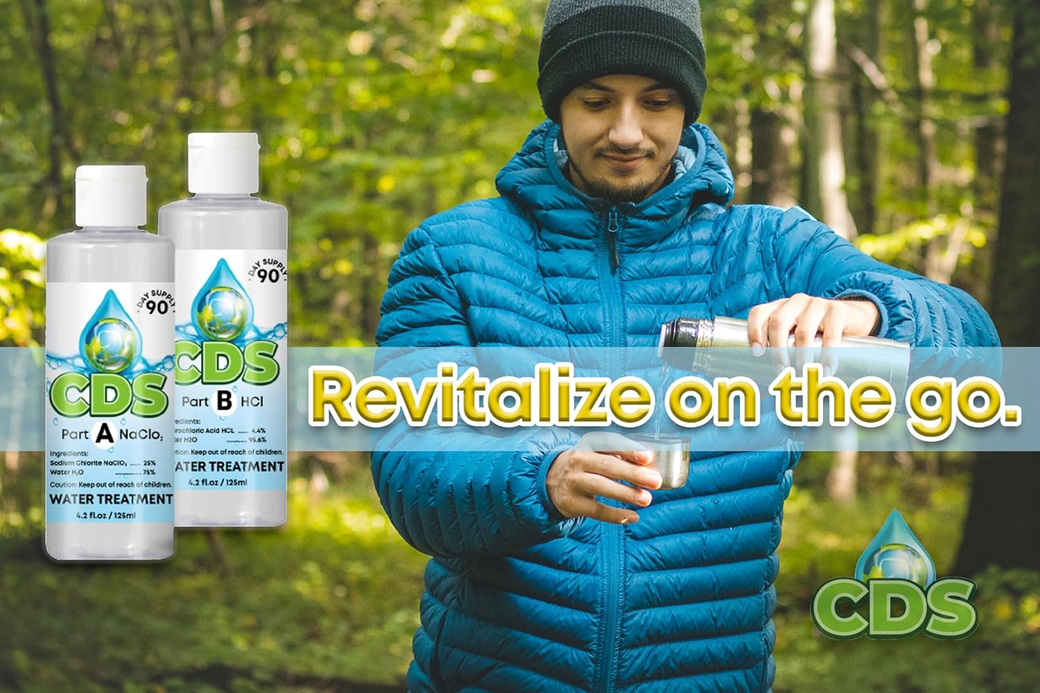 CDS Set- Chlorine Dioxide Water Treatment 8 oz KIT / – Sodium Solution w/ 4% HCl – Ideal for Hiking, Camping Essentials, Survival Kit Water Treatment (16 oz Total)
