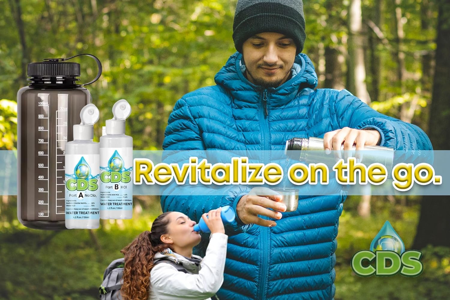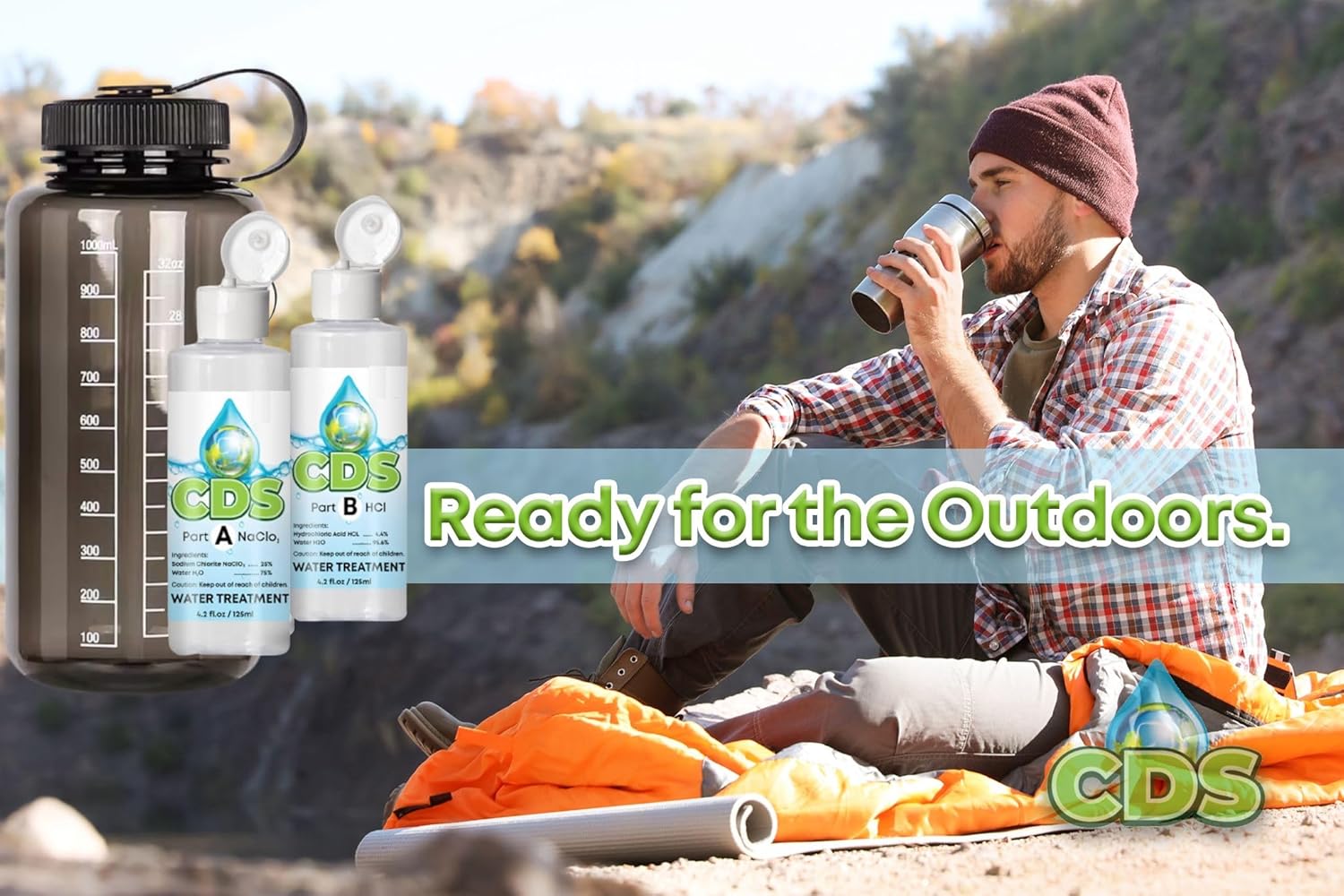 CDS SET Portable 8 oz / 250 ml Chlorine Dioxide kit / IDEAL for Hiking, Camping Essentials, Bug out Bag Survival kit, With BPA free Water bottle with 100 ml divisions!