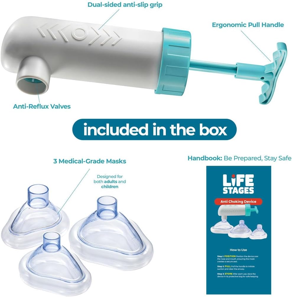Value Pack:The Anti Choking Device kit Includes One Suction Device,One Kid Mask,Two Adult Masks and One Set of User Manual.Great Soft Materials, Gentle To Skin.