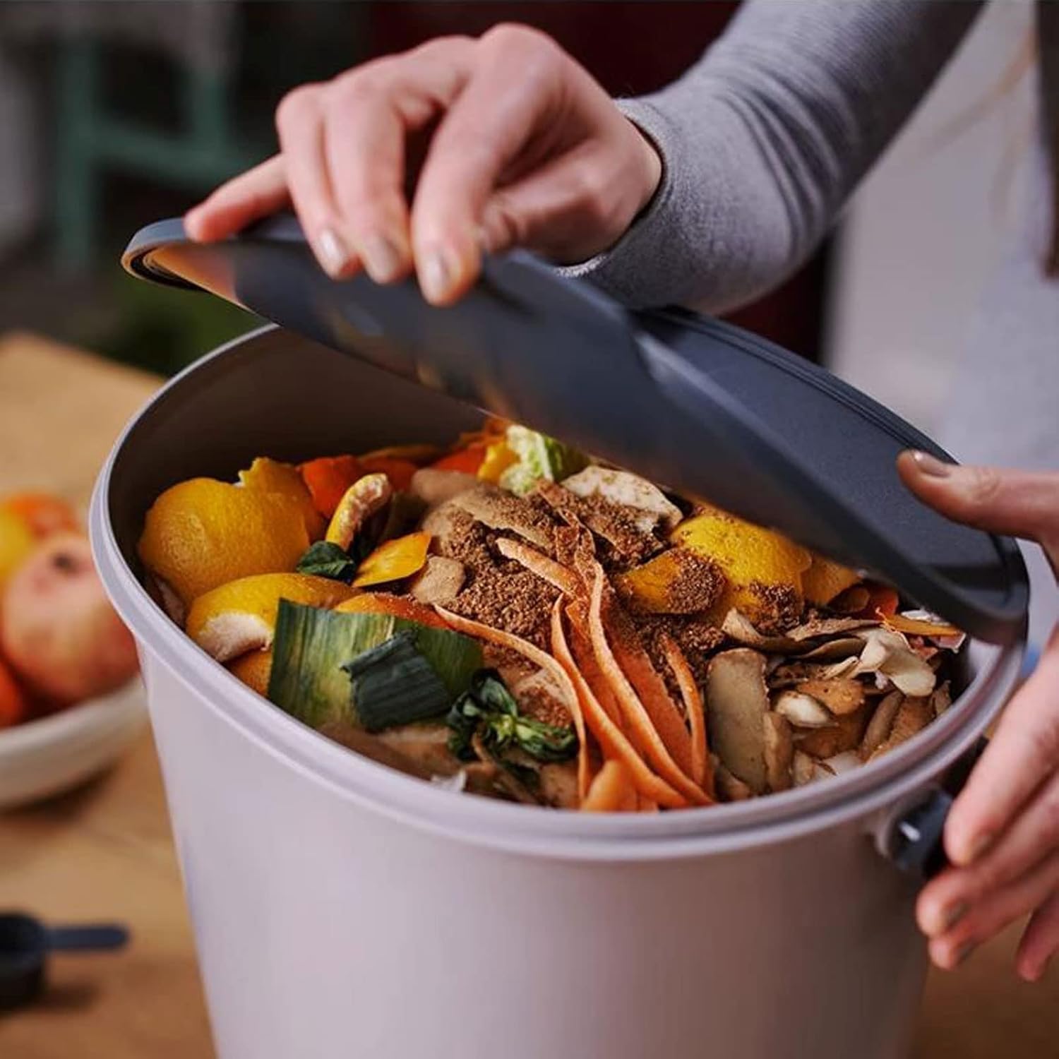 【Minimal Odor】Your new composting kit comes with our special compost starter to control odor & break down food naturally & quickly. A tight sealing lid makes it virtually odorless.