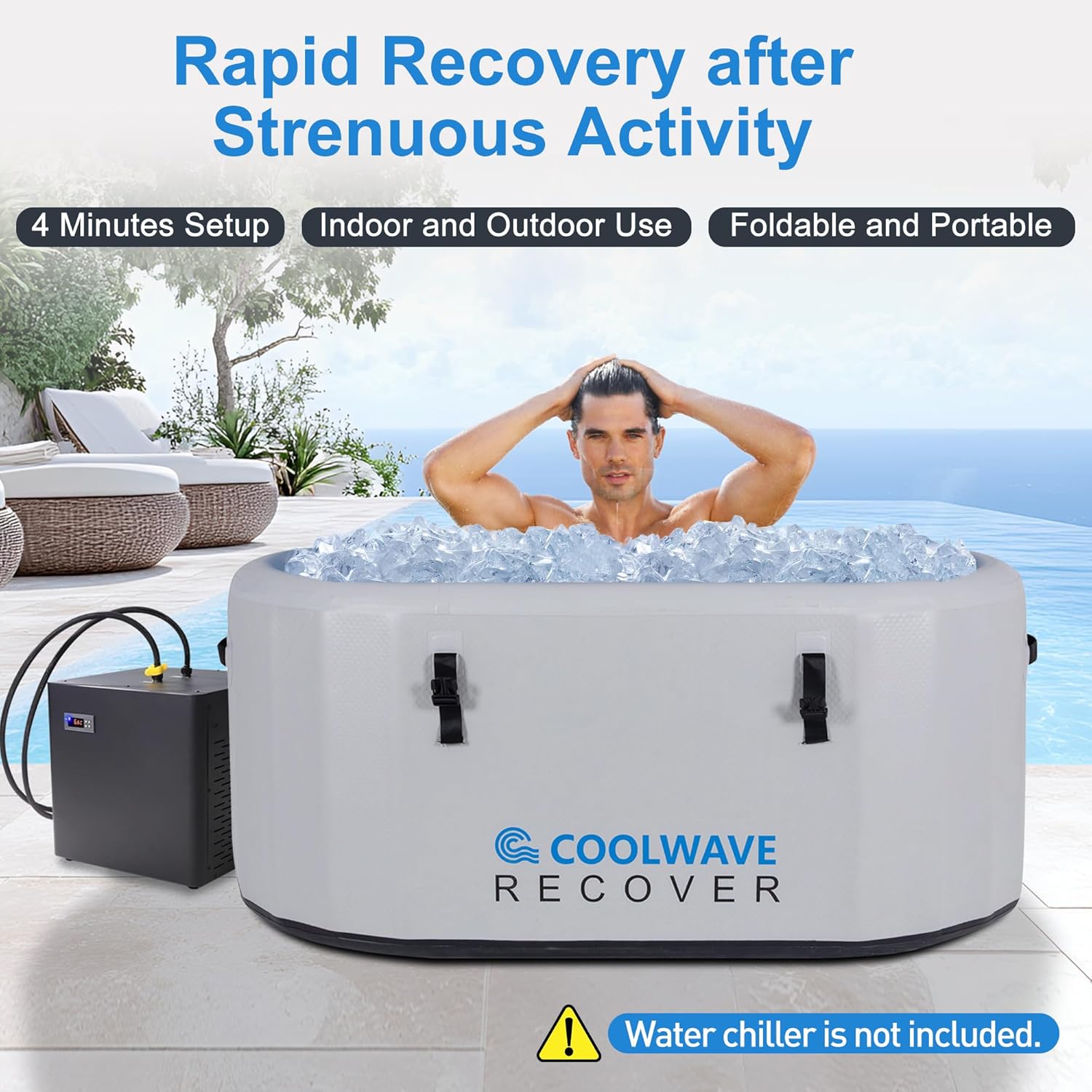 Be the first to review “COOLWAVE XXL Cold Plunge Tub, Compatible with Water Chiller, Portable Inflatable Ice Bath Tub for Athlete Recovery after Training, with Insulated Lid, Pump, Carry Bag, Recovery Pro, 59″ x 34″ x 30″”