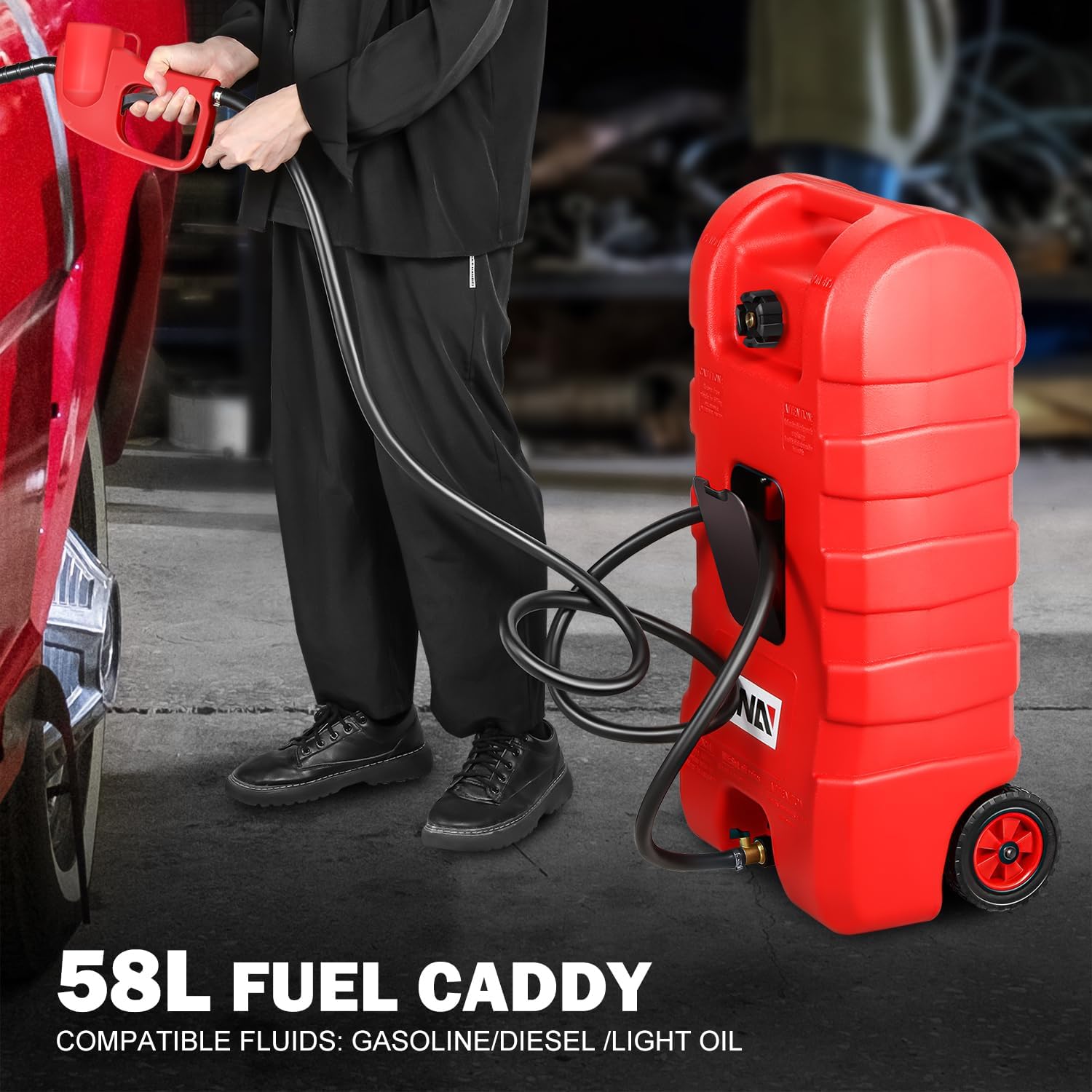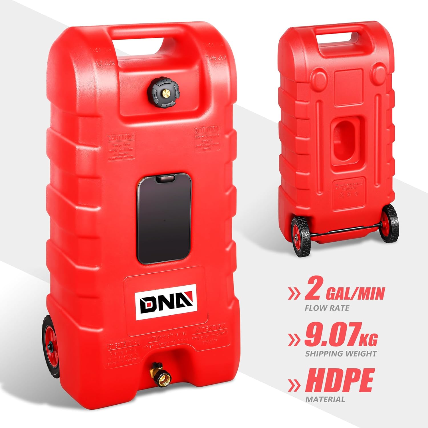 FUEL TANK ON WHEELS – Sturdy wheels and heavy-duty top handle making it easy to transport. Shipping weight:9.07kg