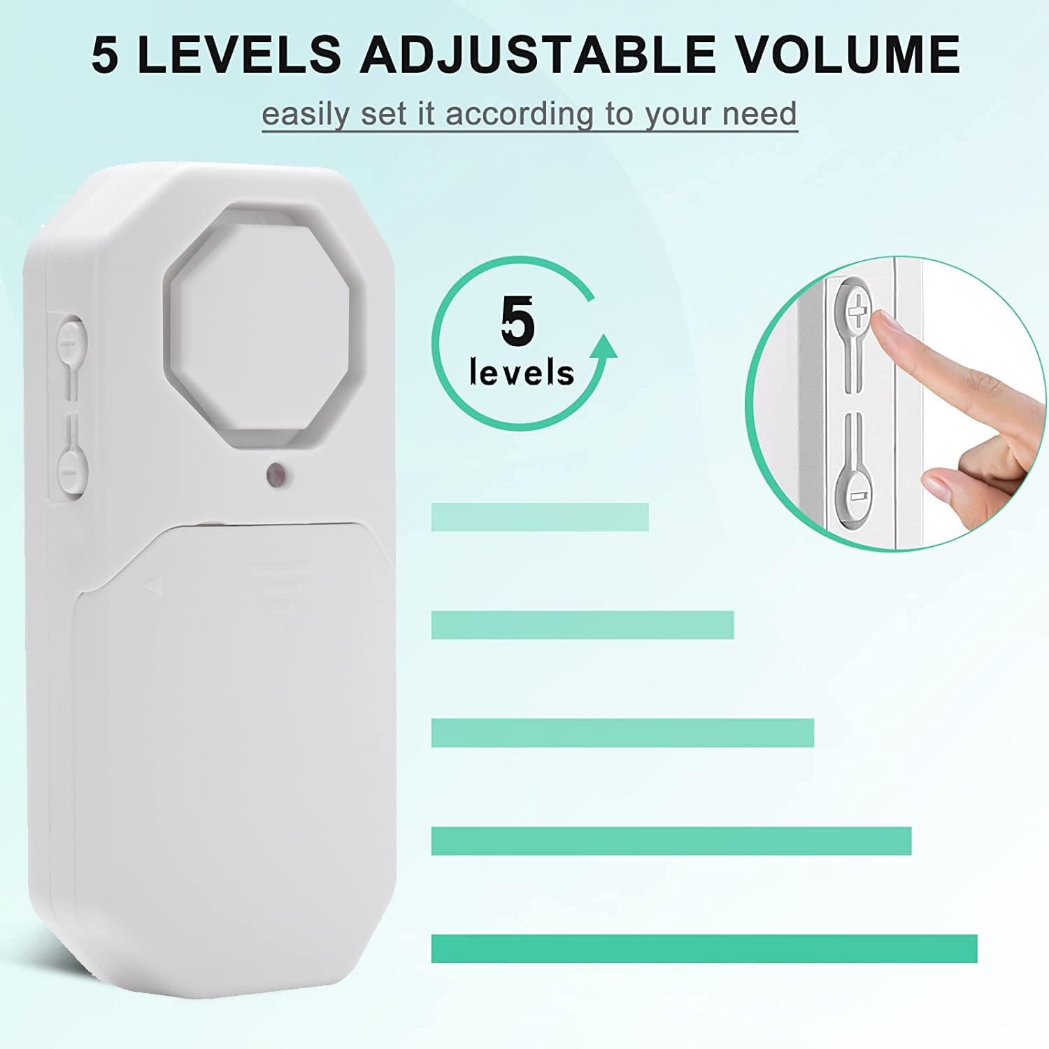 ADJUSTABLE VOLUME – Up to 130dB LOUD alarm risen, scare off potential thieves effectively and give you good peace of mind. 5 levels adjustable volume, don’t worry about the alarm is extremely loud or not loud, easily press +/- button to set the volume as your need. Well-made door alarm with great performance