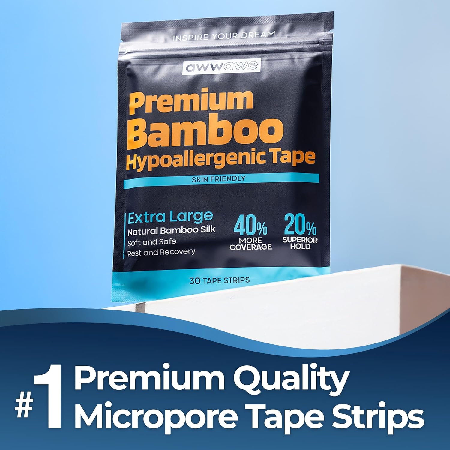 Large Size Micropore Tape (30 Count) offers 40% more coverage than competitors. Made with natural bamboo silk, it ensures exceptional softness, comfort, and breathability. The hypoallergenic, latex-free tape is safe for sensitive skin and designed for easy application and pain-free removal.