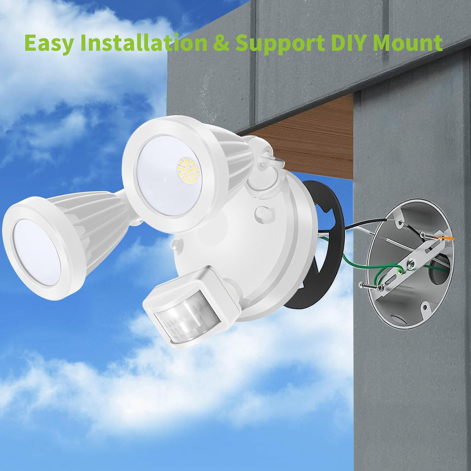 ⚠️【360 °Adjustable Design & Easy Installation】: The heads of this outdoor security light can be adjusted 360°, allowing you to flexibly position the 2 LED heads and motion sensor to different angles based on your needs. Easy installation on the wall with a junction box through several simple wiring steps.