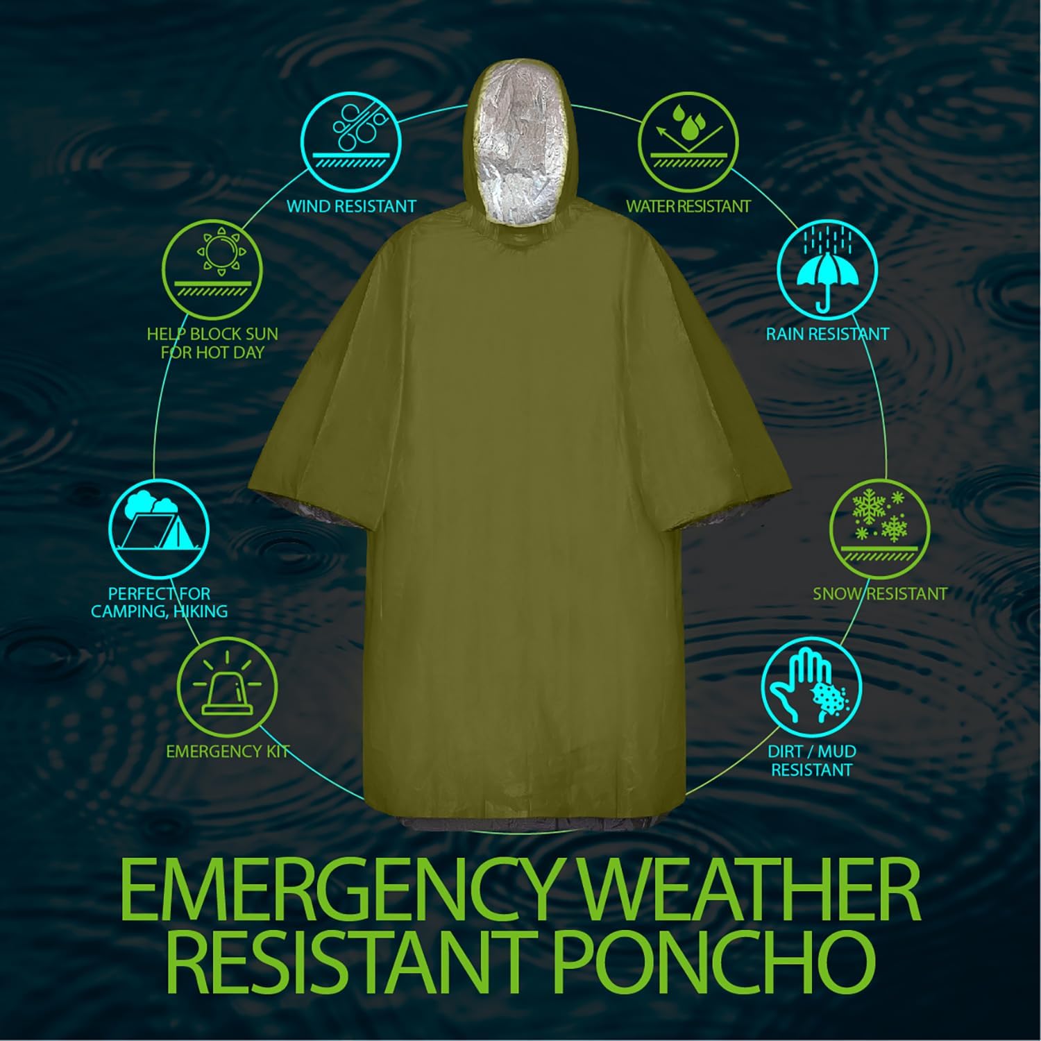 [EMERGENCY SURVIVAL RAIN PONCHO & BLANKET] When bad weather comes, FosPower’s rain poncho will keep you dry, clean, and safe. The 28µm thick thermal raincoat can serve as an emergency blanket, which will retain 90% of your body heat to help prevent hypothermia, and is waterproof and windproof.