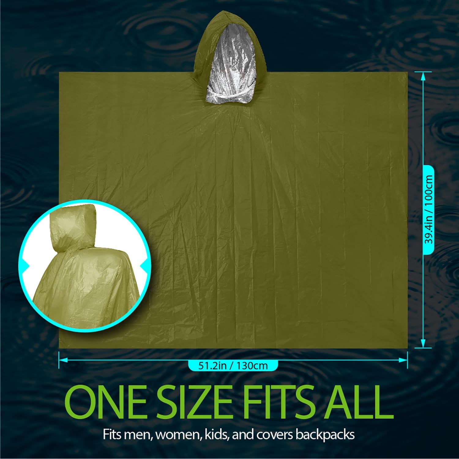 [ONE SIZE FOR EVERYONE] The size of the rain poncho is 51.2” x 39.4” / 130 cm x 100cm (excluding the hood), suitable for both adults and children. It is big enough to cover a backpack as well. The 4-pack of rain ponchos can be shared with family members and friends, or kept as extra backups for yourself.