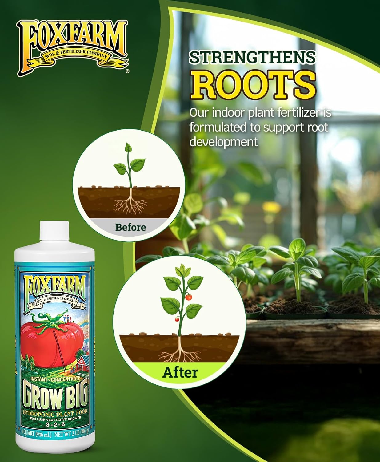 POWERFUL NUTRIENT-RICH BLEND: This 3-2-6 indoor plant fertilizer, enriched with earthworm castings and micronutrients, supports plant health and structure. It enhances soil quality, promotes vibrant foliage, and strengthens root systems for optimal gardening