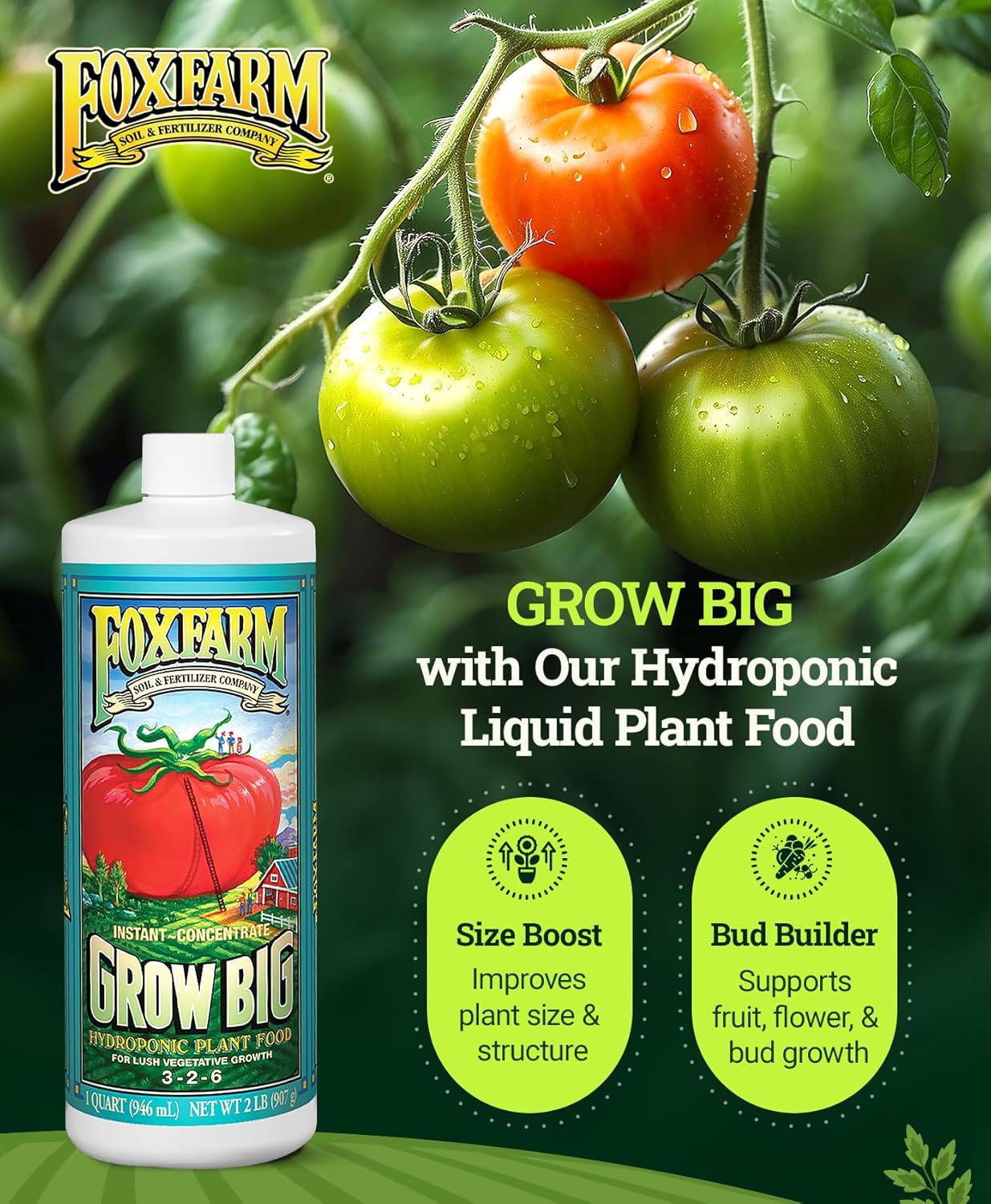 Be the first to review “FoxFarm Grow Big Hydro Liquid Fertilizer, Plant Food with Micro Nutrients for Hydroponic Systems – Enhances Vegetative Growth, Flowering, and Fruiting – pH Adjustable, NPK 3-2-6 (Quart)”