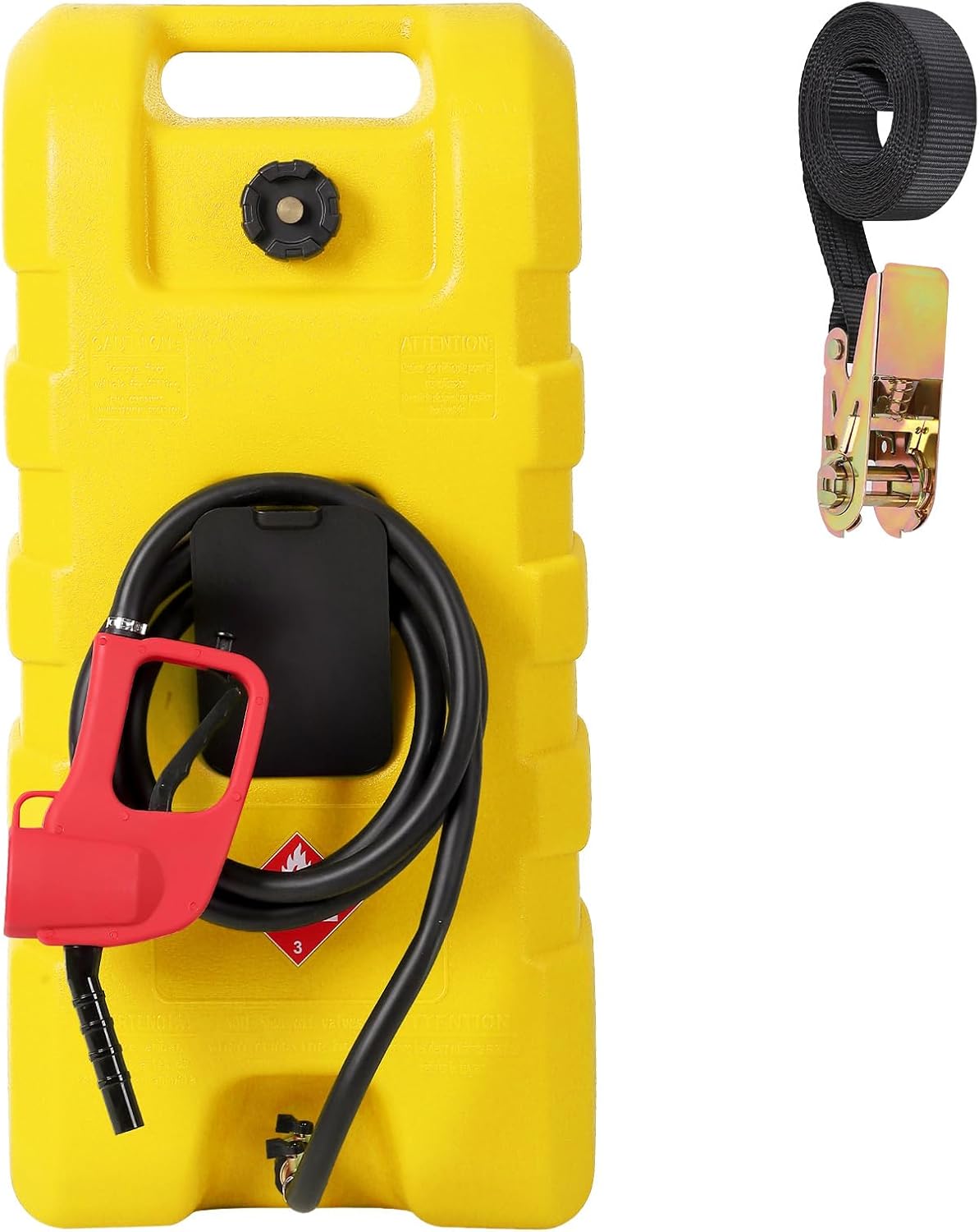 【High-Capacity, High-Quality】The maximum capacity of 60 liters of fuel petrol stores enough fuel for multiple vehicles. The 10ft long hose is automotive grade rubber and comes with a stand for easy storage.