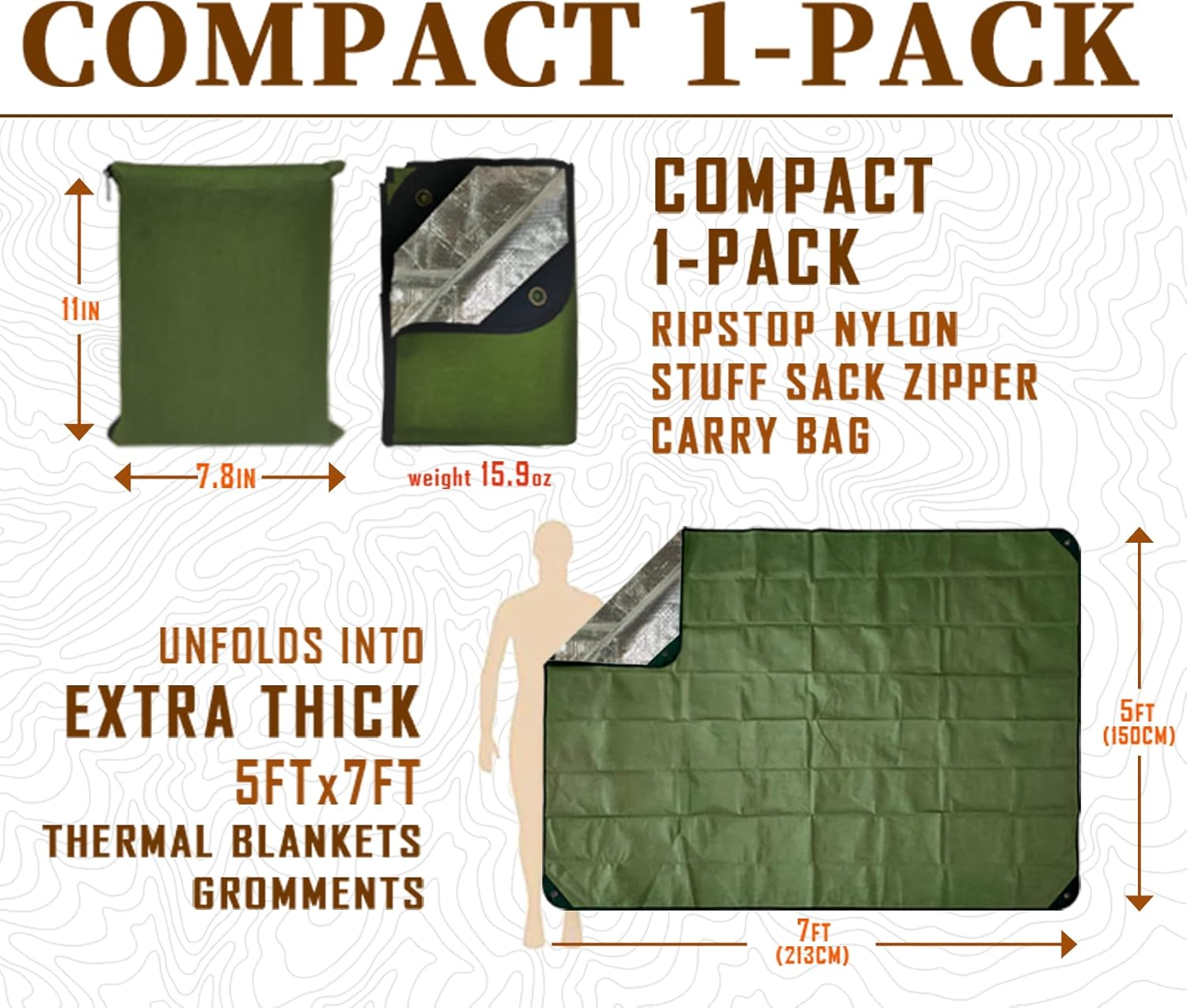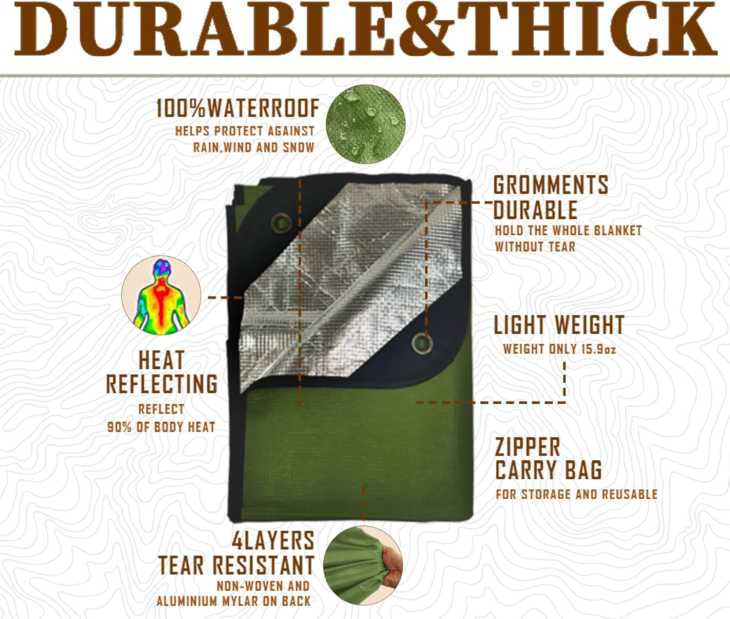 【All Seasons Emergency Blanket】 This reflective Emergency Survival Blanket is Sandproof,waterproof,windproof and has excellent heat reflection.Made of high strength polyester combined with aluminium mylar on back.Better insulation thermal,more thickness,more durable and less to damage than traditional single-layer mylar.