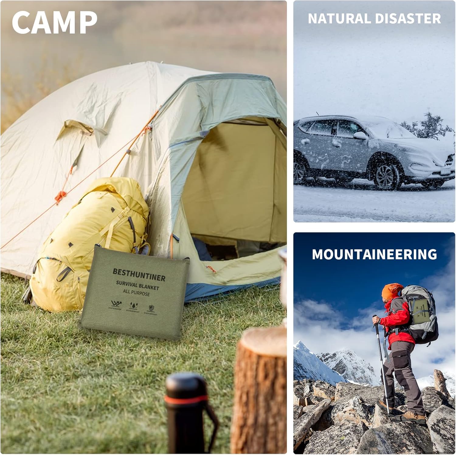 【Foldable & Portability】Besthuntiner’s emergency blanket overall folded in a carry zipper storage bag and folded size is 28*20*5cm and the weight is 450g, which is very convenient to carry around and put in a backpack or car trunk. The unfolded blanket size is 213*150cm, which can easily cover two people, and one person can wrap the whole body.