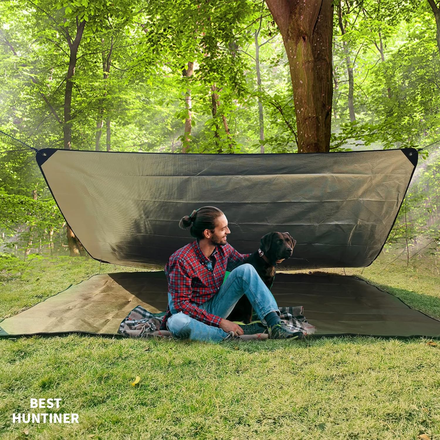 【Outdoor Equipment】Aluminized Mylar can reflect the light to make you to found easily and retain up to 93% of body heat to keep warm from cold to save your life.Focus sun light to heat your food or light a fire in the wild.So you stay warm,dry and alive in an emergency. The close-to-natural color and insulation can be used to deceive animals, and good shielding can reduce radiation and signal interference.