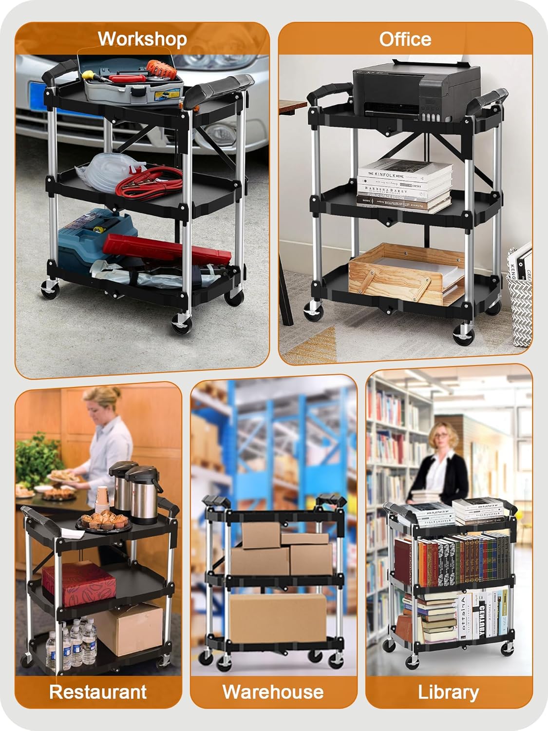 Versatile Use: It can be used as a tool cart for garages and paint shops, or a work cart for offices and Studio, a display cart for conventions, and can also be used as a service cart for homes and restaurants.