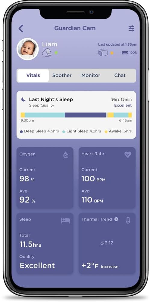 Stay Connected: The award-winning Hubble Guardian+ tracks key information on baby’s well-being, including heart rate, blood oxygen levels and body temperature through the FREE HubbleClub app to help parents get more insights into baby’s sleep and wake patterns; The unique Hubble Sleep Score gives an overview of baby’s sleep quality to help manage growth and wellness; It includes an HD baby camera along with the wearable baby sensor and base unit that doubles as an audio monitor and night light