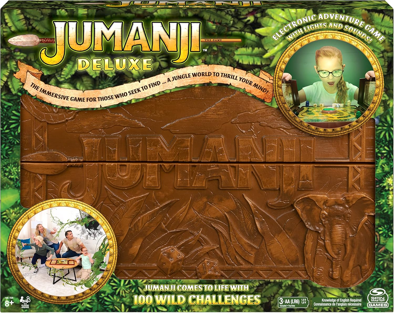 DO NOT BEGIN UNLESS YOU INTEND TO FINISH Jumanji Deluxe Board Game takes you and your fellow adventurers on a quest through the jungle, solving riddles, surviving events, and completing challenges while trying not to lose your Life Tokens