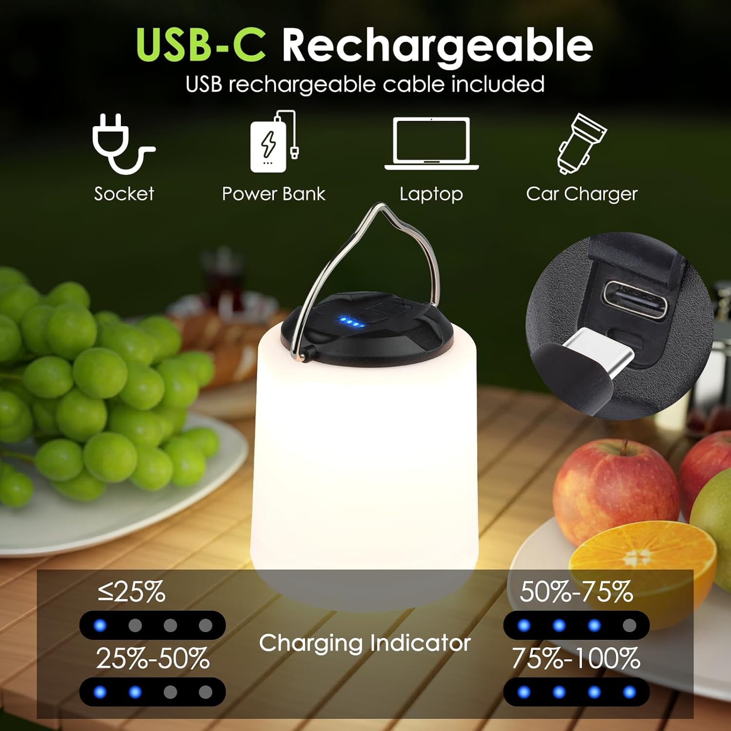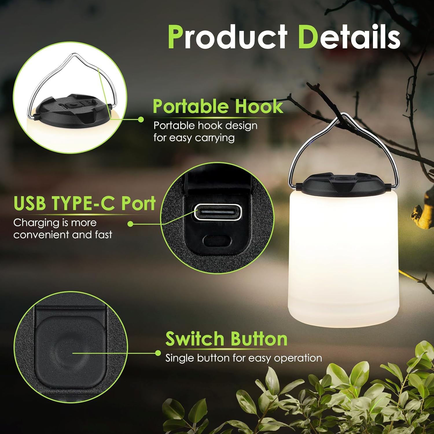 Rechargeable Versatile Companion: The camp lanterns features a rechargeable design, you can rely on it repeatedly, providing convenience and sustainability for all activities. Outdoors, it’s perfect for camping, hiking, fishing, etc. Indoors, it serves as a night light for kids’ rooms, a backup lighting source during power outages, or added ambiance during backyard gatherings. Whether you’re exploring the great outdoors or simply need reliable lighting at home, this lantern has you covered.