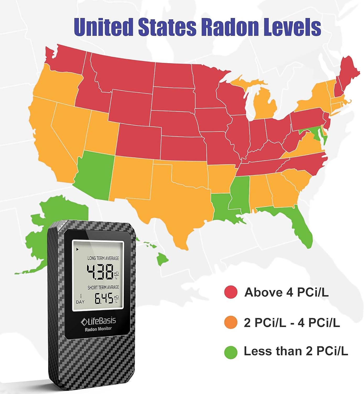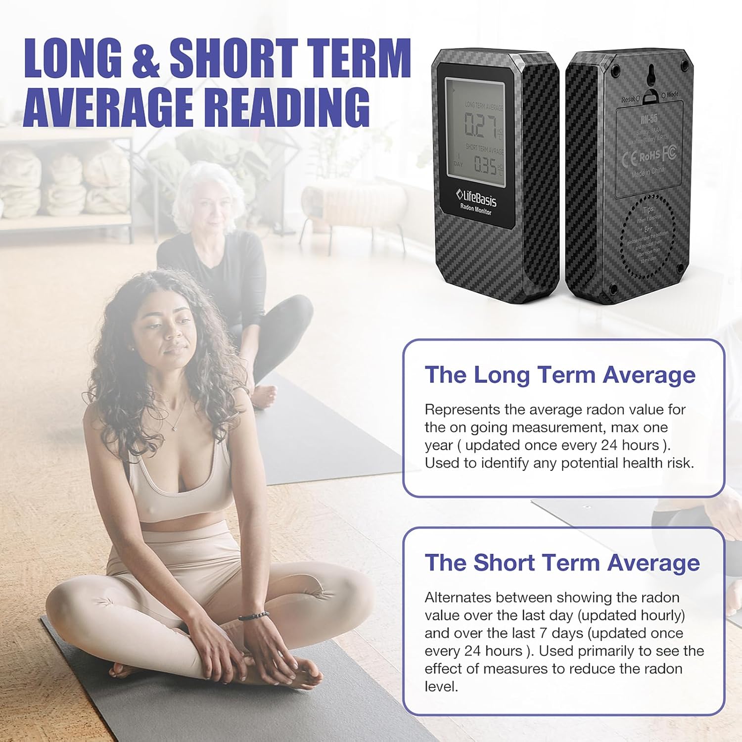 Accurate Monitoring: Life Basis radon detector with LONG-TERM & SHORT-TERM AVERAGE READINGS- long-term average (up to 1 year), last-day average (updated hourly), and last 7-day average. The longer the measurement time, the more accurate the result