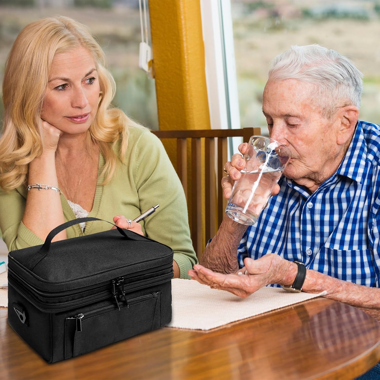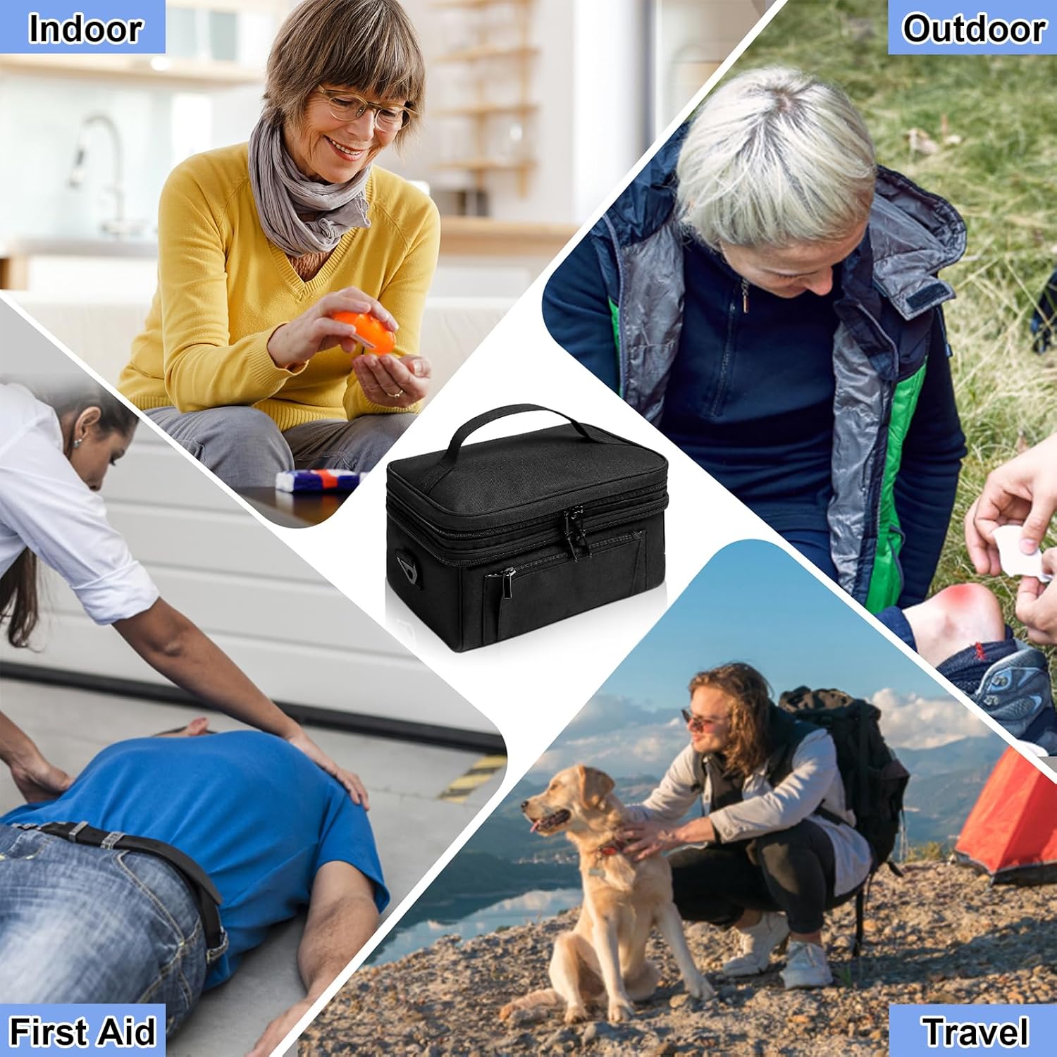 【3 Different Portable Methods】The medication bag comes with carrying handle and an adjustable shoulder strap. You can also take just a portable pouch when go on a trip. The lockable zippers (without lock) is designed for privacy and security protection.