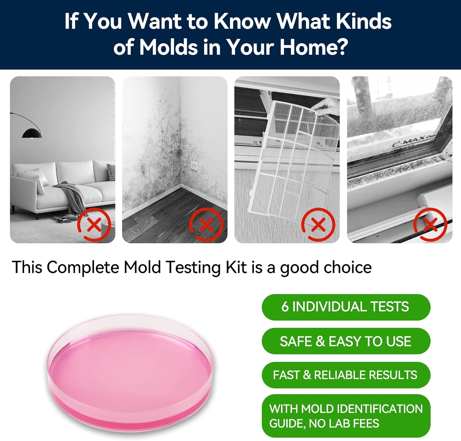Mold Test Kit for Home – 6 Individual Detection Tests,Home Surfaces, HVAC System,Indoor Air Quality Testing Kits,DIY Mold Detector Includes Detailed Mold Identification Guide