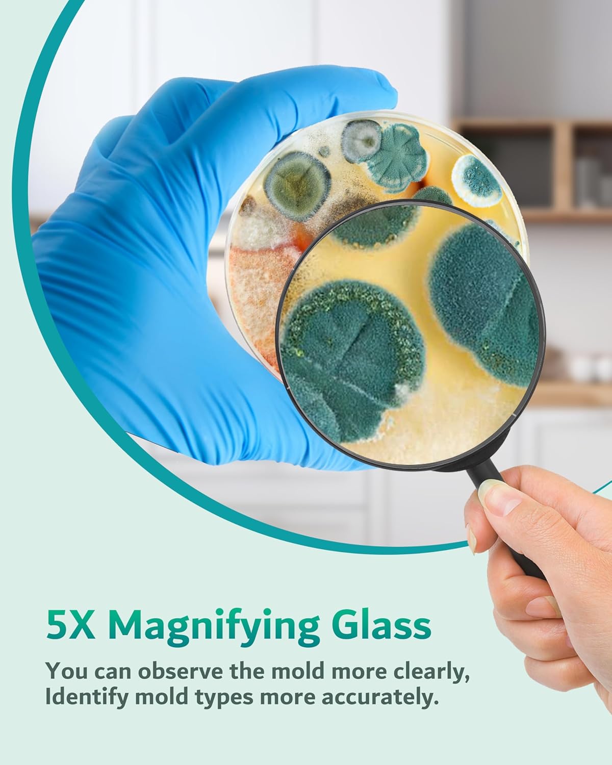 【𝗔𝗹𝗹 𝗬𝗼𝘂 𝗡𝗲𝗲𝗱𝘀 𝗜𝗻𝗰𝗹𝘂𝗱𝗲𝗱】Our best home mold testing kit includes 8 test plates, a 5X magnifying glass(for better visibility), a comprehensive mold guide and removal instructions, enough swabs, label sheets, and test gloves. Everything necessary for effective and thorough mold testing and observation at home included.