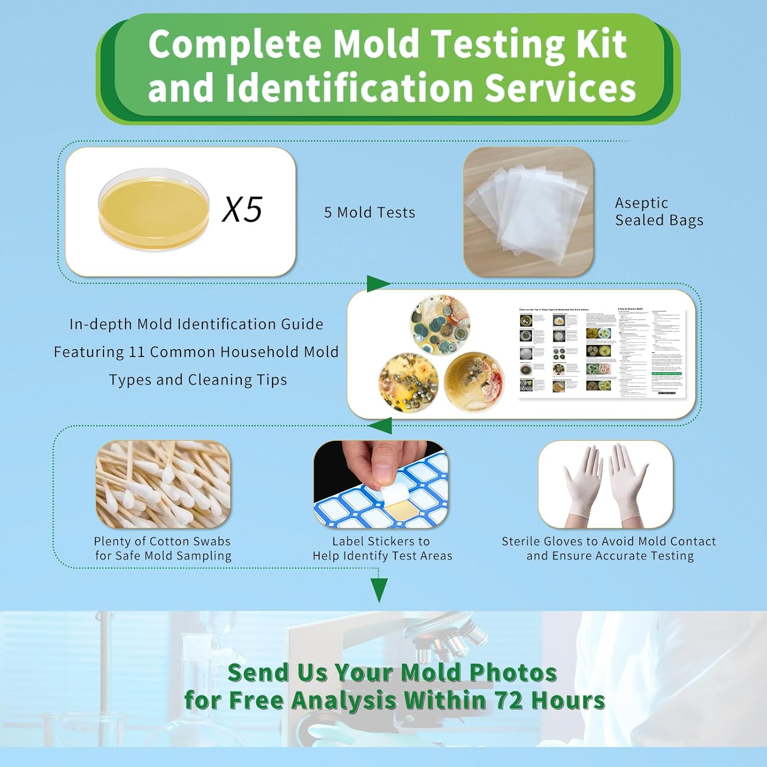 Fast and Reliable mold detector – This mold test kit for home includes a mold identification guide, it delivers quick and reliable results. You can easily identify and understand the type of mold present in your home, enabling prompt and effective action