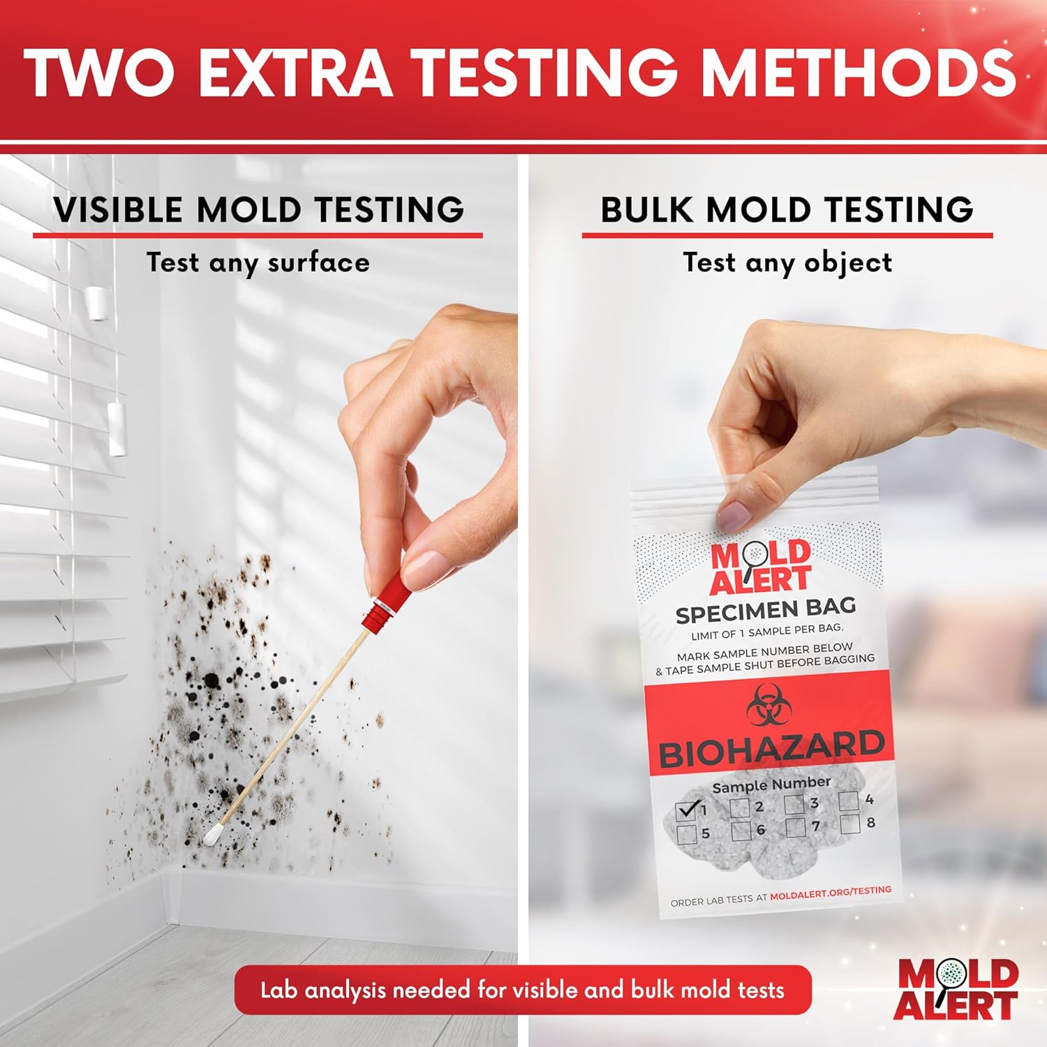 🔍 OPTIONAL LABORATORY TESTING: For more detailed results, you can purchase lab analysis separately. Use the included prepaid mailer to send samples to our AIHA-certified lab partner for professional-grade results.
