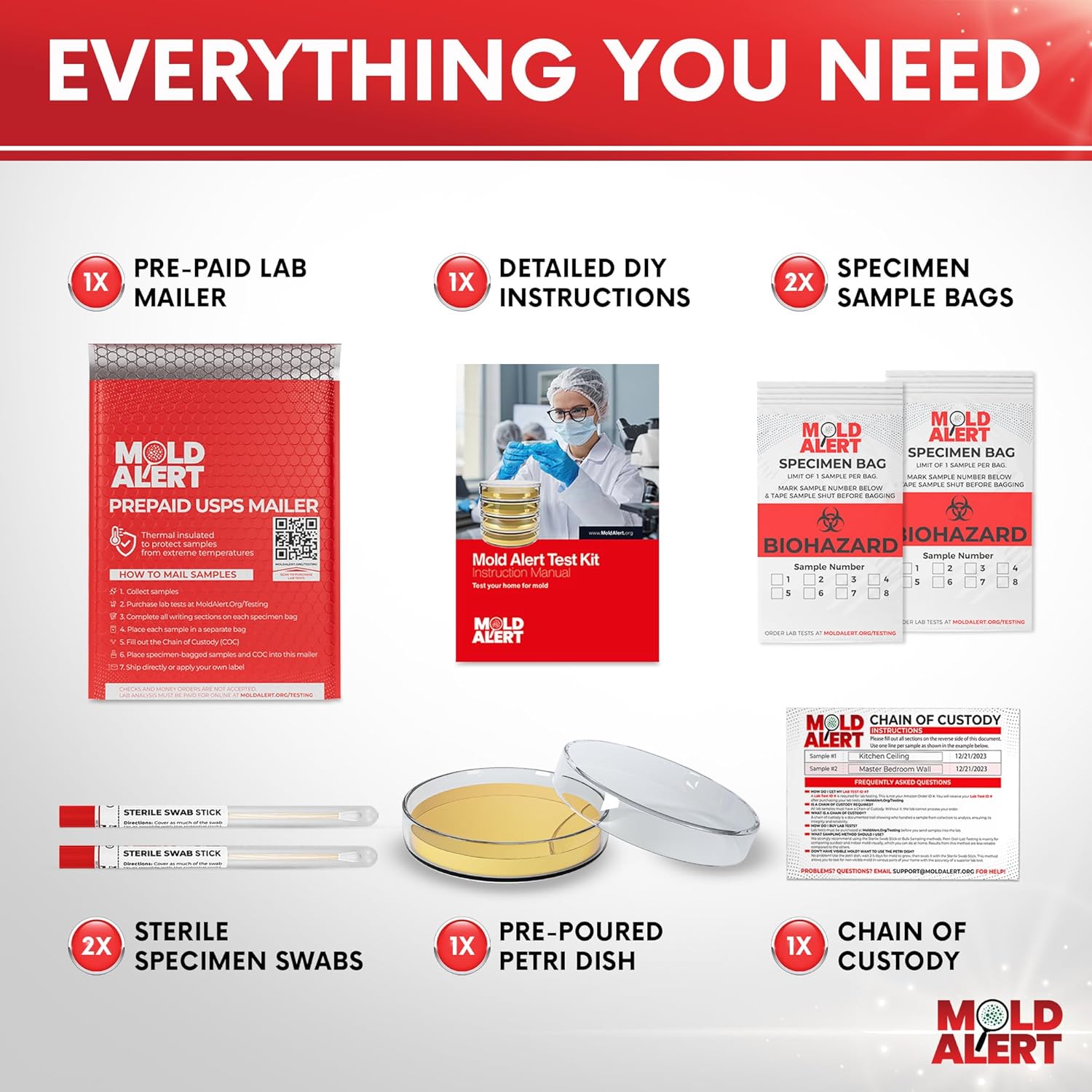 MoldAlert Mold Test Kit for Home | DIY at Home Mold Test Kit with Self-Analysis Guide | One Petri Dish Covers 1,000 Square Feet (1-Pack)