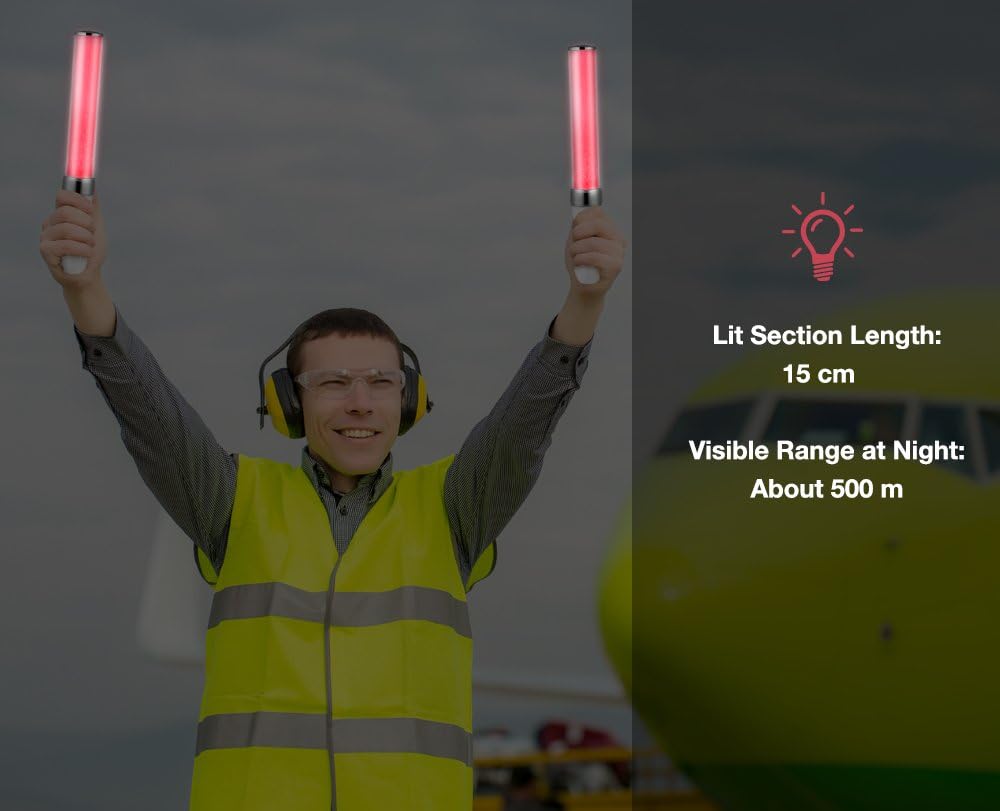 OTHER DETAILS: Includes 3 AAA batteries; has a diameter of 3 cm and a length of 15 cm (lit section); visible range of over 500 m on a clear night; can be used at concerts and celebrations, or as a signal or warning light outdoors.